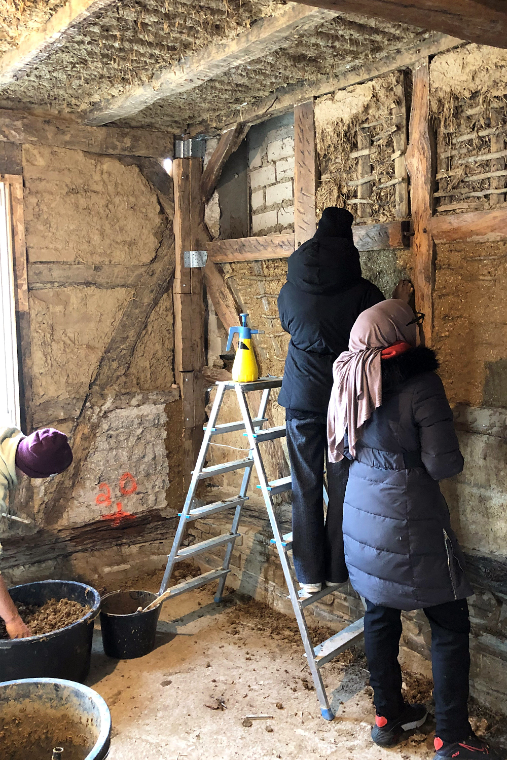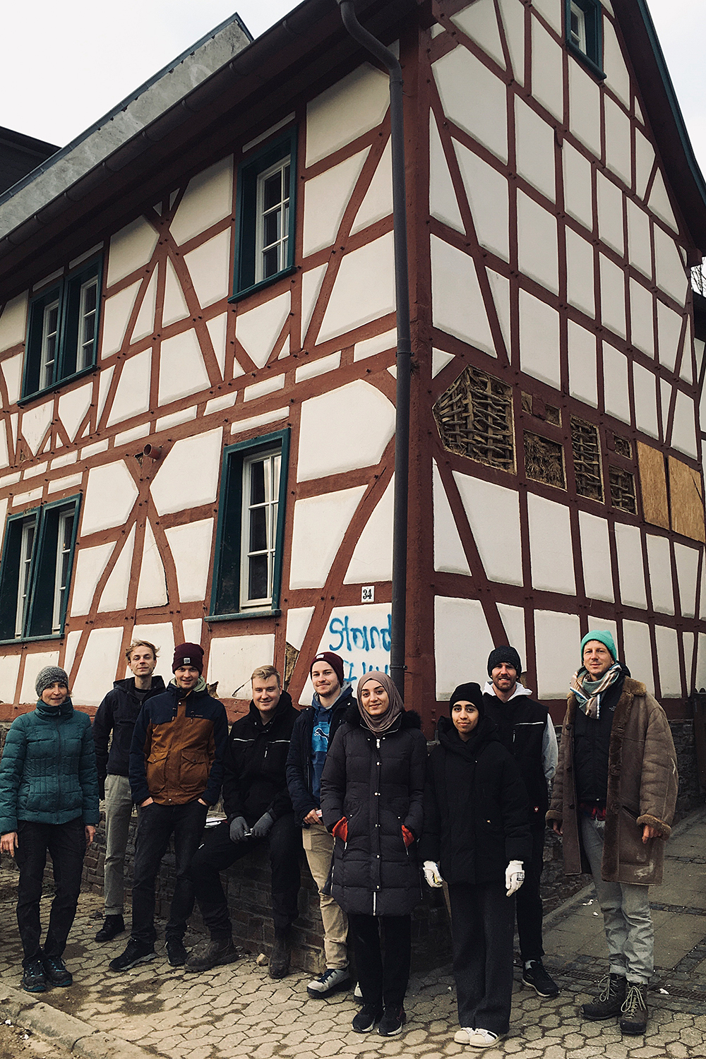 Eine Woche lang sind zehn Studierende vor Ort, um die Schäden aufzunehmen und das Haus winterfest zu machen, Messungen durchzuführen und damit zu beginnen, die Planung der Instandsetzung zu koordinieren. Im Vorfeld haben die Studierenden in Workshops Grundlagen zu Gebäudeaufmaß und Lehmbauweisen erlernt. Hierbei wurden sie an das Material Lehm als Baustoff herangeführt und erhielten erste Einblicke in verschiedene Wandaufbauten und Kombinationen des Baustoffs mit anderen Materialien. Im Frühjahr 2022 werden viele helfende Hände in einem weiteren Workshop vor Ort die Lehmausfachungen sanieren. Bis dahin können die Wände trocknen und die anstehenden Arbeiten geplant werden. Damit wird es möglich, im Rahmen der Initiative in der Eifel tatkräftig und nachhaltig zu unterstützen, gleichzeitig den Studierenden Praxiserfahrungen im Lehmbau zu vermitteln und darüber hinaus übertragbare, interdisziplinäre wissenschaftliche Erkenntnisse zu erlangen.