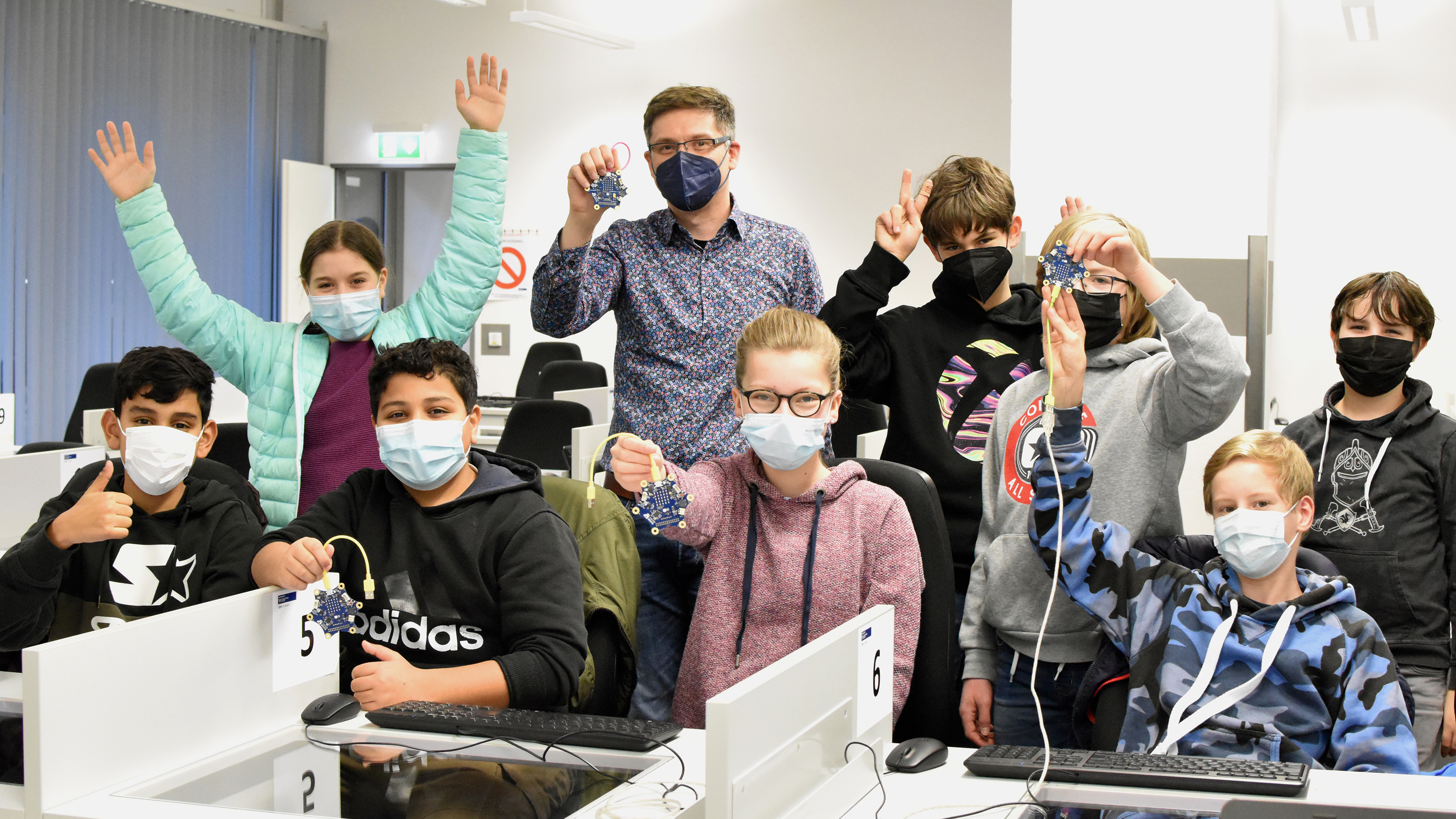 Sei so neugierig, wie Du willst! – lautet das Motto. Auf die 12- bis 14-jährigen Mädchen und Jungen, die mittwochnachmittags an der UDE tüfteln, trifft das voll zu. Als aktiv und neugierig beschreibt Thorsten Kimmeskamp die Jugendlichen. „Am schönsten ist der Moment, wenn sie merken: Yeah, es funktioniert.“