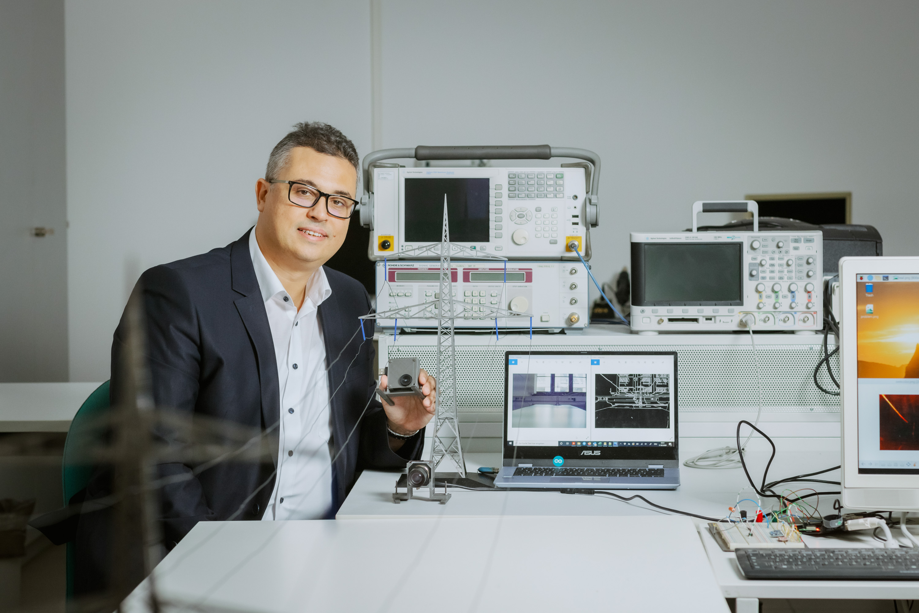Um die Übertragungskapazität der Stromleitungen zu erhöhen, müssten Energieversorgungsunternehmen wissen, wann der maximale Durchhang der Stromleitungen erreicht ist. Zu diesem Zweck hat Derbel gemeinsam mit seinem Forschungsteam die Messeinrichtung entwickelt. „Die Herausforderung war, ein autarkes System zu konstruieren, das nicht an den Leitungen befestigt ist. Durch die angespannte Netzsituation ist schließlich die Abschaltung von Freileitungen nicht möglich, ohne die Netzstabilität zu gefährden“, sagt Derbel. Die Ingenieure haben deshalb einen Messsensor mit Kamera konstruiert, der am Strommast angebracht werden kann. Seine für den Betrieb benötigte Energie gewinnt das System eigenständig aus den Ableitströmen an den Strommasten. Mittels intelligenter Bildverarbeitung werden aus den längs aufgenommenen Bildern die Neigungen der Leitungen erkannt und daraus der Durchhang ermittelt. In Zukunft sollen diese Daten per Funk übertragen werden, sodass Energieversorgungseinrichtungen automatisch die durchgeleitete Strommenge anpassen können.
