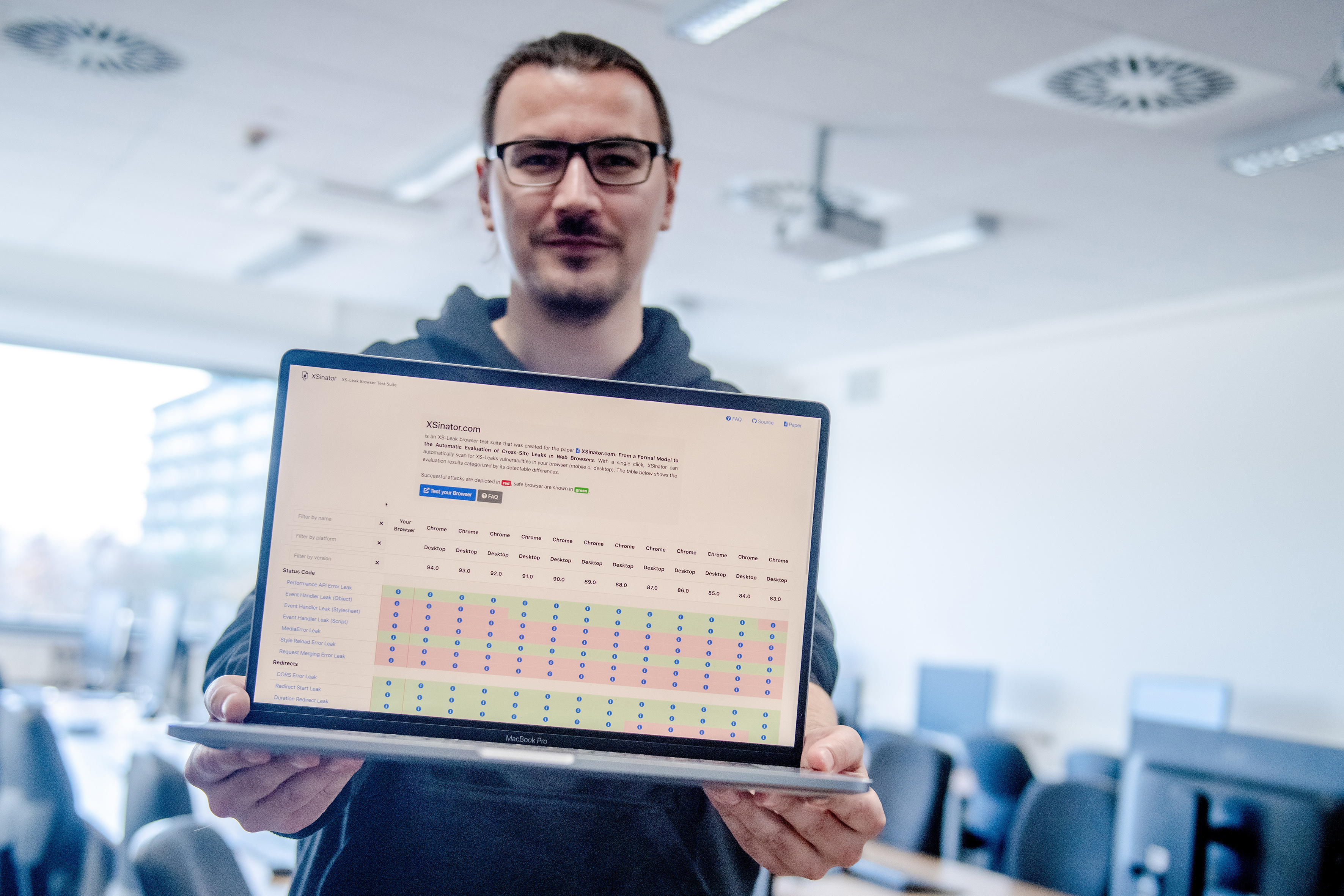 Dazu entwickelten sie die Webseite XSinator.com, mit der sie Browser automatisch auf XS-Leaks untersuchen konnten. Verwundbar gegen eine Vielzahl von XS-Leaks waren zum Beispiel bekannte Browser wie Chrome und Firefox. „Häufig sind XS-Leaks Browser Bugs, die vom Hersteller behoben werden müssen“, sagt Lukas Knittel, einer der Bochumer Autoren der Arbeit.