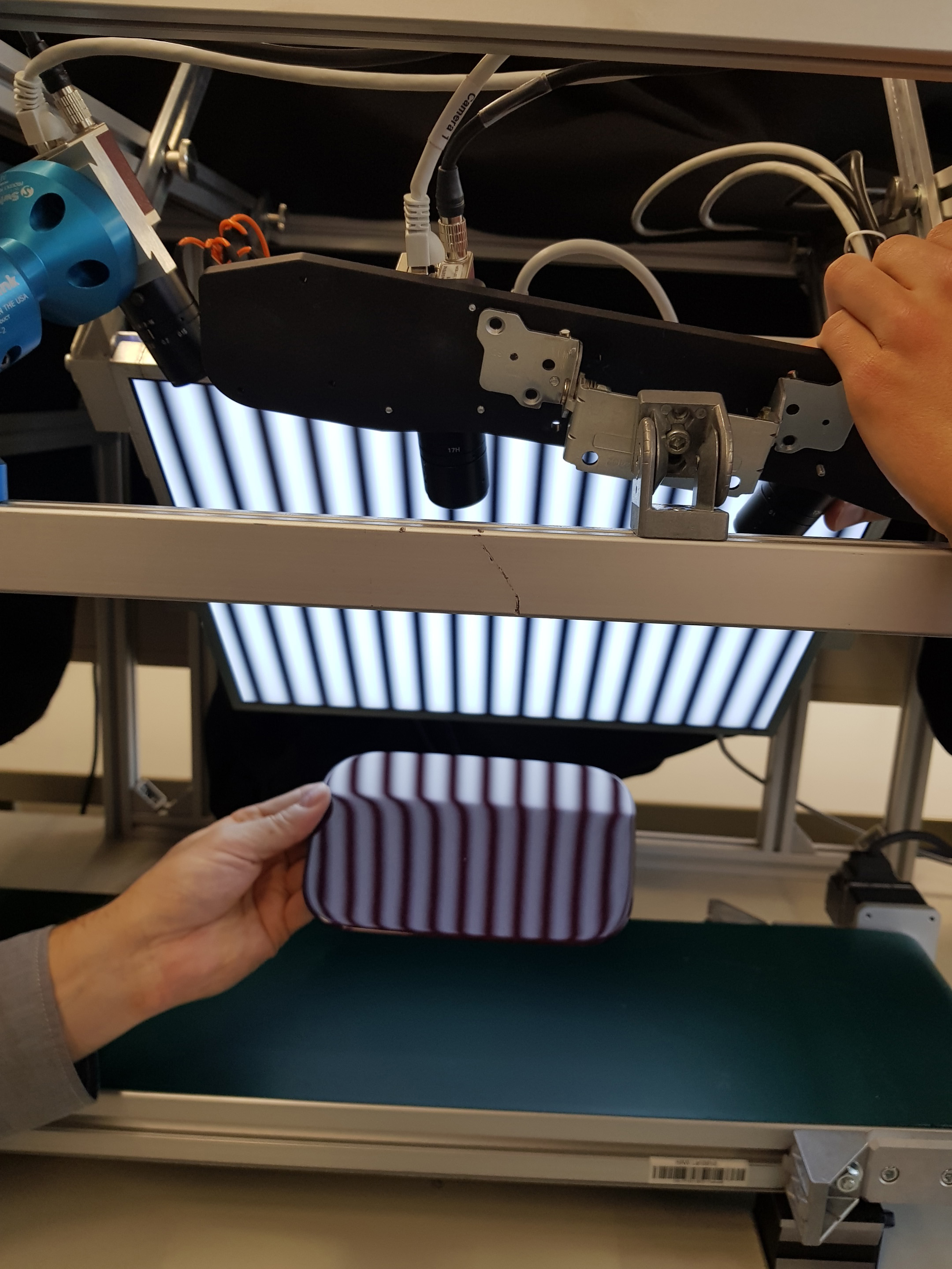 Um das ehrgeizige Ziel zu erreichen, sollen das zur Auslegung und Optimierung solcher Aufbauten erforderliche Ingenieurswissen und die zugehörige Erfahrung im Rechner nachgebildet werden. Dies soll mit einer cleveren Kombination aus Methoden der physikalischen Modellierung, wie sie beispielsweise auch für die Visualisierung bei Videospielen angewendet werden, und künstlicher Intelligenz geschehen. Zu den Messverfahren, für die diese neue Methode eingesetzt werden kann, zählen bei KISSMe3D das Lichtschnittverfahren, die Deflektrometrie zur Messung von spiegelnden Oberflächen wie etwa Linsen oder Smartphone-Displays und die Streifenprojektion für matte Gegenstände wie zum Beispiel Spritzguss-Kunststoffteile. Damit kommen Laser, Bildschirm und Projektor zum Einsatz. Diese drei unterschiedlichen Lichtquellen sowie die Eigenschaften der verwendeten Kameras sollen nun am PC möglichst realistisch beschrieben werden, damit die optimale Anordnung für jede neue Messaufgabe „auf Knopfdruck“ ermittelt werden kann. „Auf diese Weise lässt sich der Entwicklungsprozess enorm beschleunigen. Die Konzeptionierung, die aktuell durchaus mehrere Wochen bis Monate dauern kann, erfolgt dann vollautomatisch im Rechner“, erklärt Prof. Dr. Christian Faber, Projektleiter an der Hochschule Landshut, der mit seinem wissenschaftlichen Mitarbeiter Simon Hartel vor allem für die physikalische Modellbildung zuständig ist.