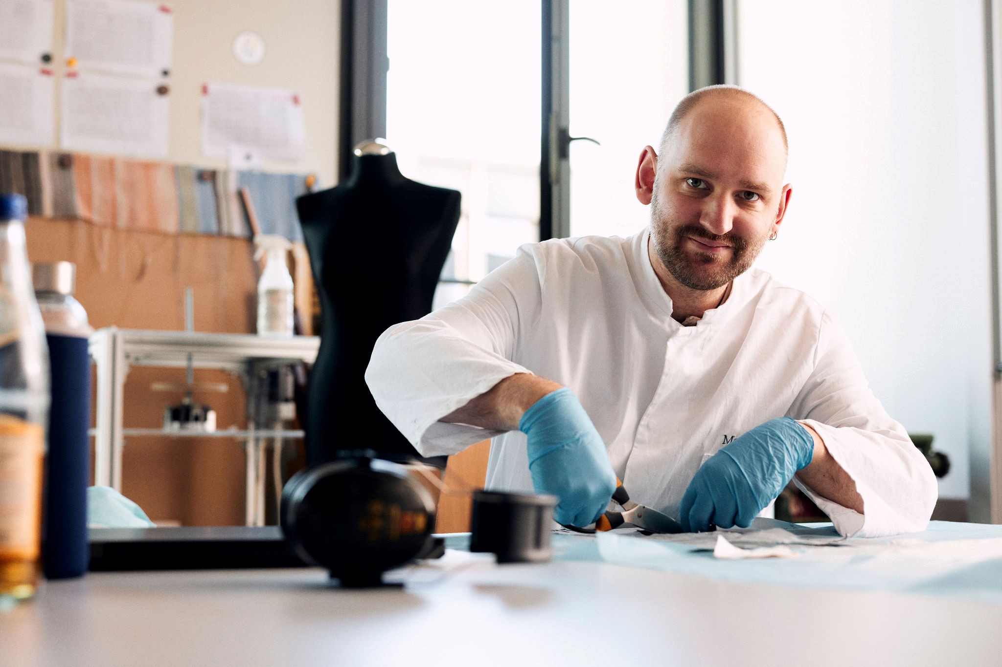 „Genau an der Stelle laufen momentan unsere Untersuchungen. Wir möchten herausfinden, welche Kombination der Materialien am besten funktioniert“, so der Projektleiter. Nach den ersten Tests in der Elektrospinnanlage, bei denen Graphit, Anthocyane und Titandioxid aufgetragen wurden, ist Marius Dotter schon sehr zufrieden: „Es fühlt sich noch nicht wie Textil an, aber das Prinzip funktioniert gut. Die nächsten zwei Jahre werden zeigen, wie eine ideale Zusammensetzung aussehen könnte.“