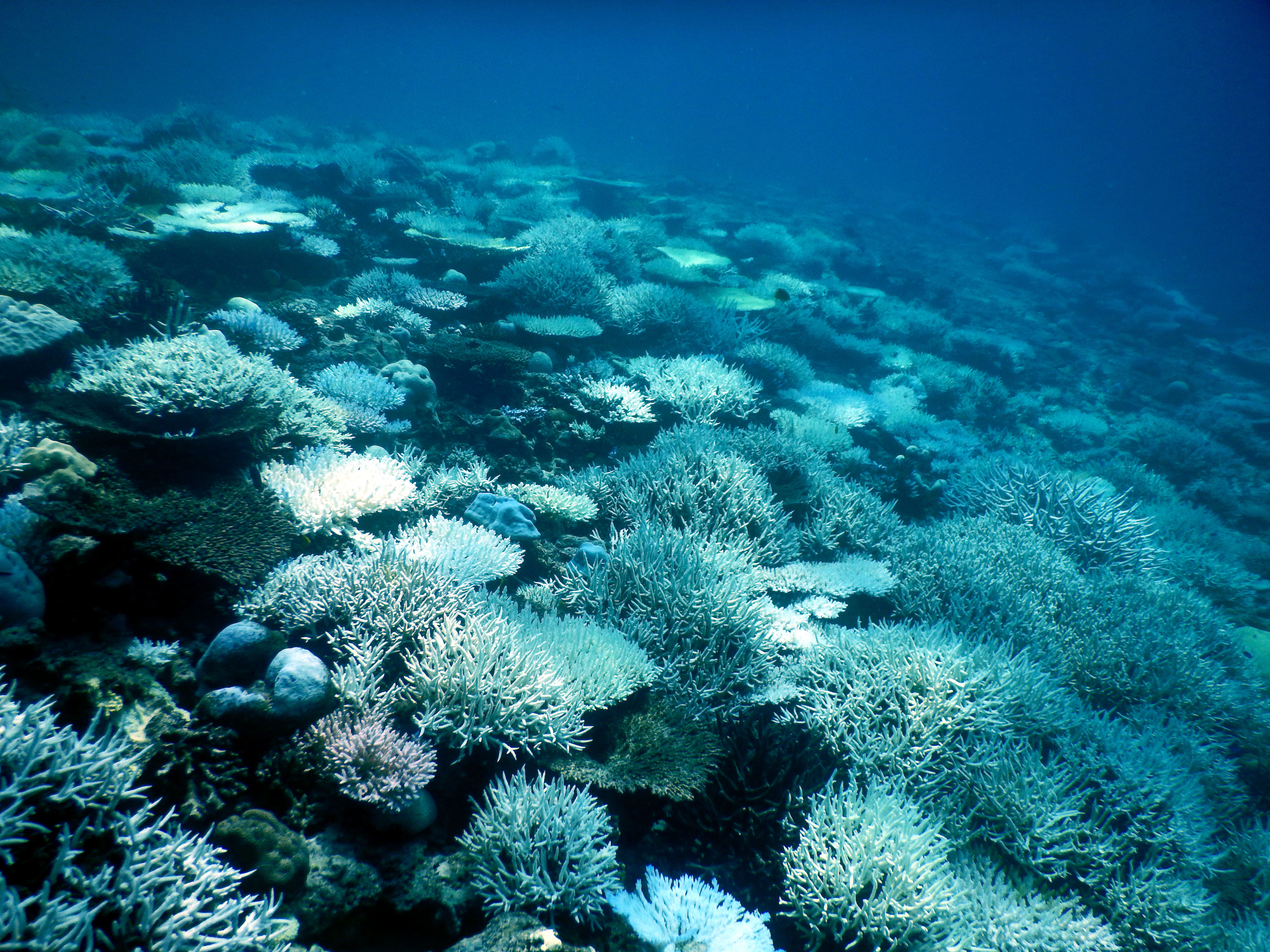 Das Aldabra Atoll ist eine von nur 50 marinen UNESCO-Welterbestätten und liegt weit draußen im Indischen Ozean. Dort spielen menschgemachte lokale Faktoren wie der Eintrag von Nährstoffen und Überfischung so gut wie keine Rolle, erläutert die Wissenschaftlerin. Dennoch hat dort die letzte Korallenbleiche von 2016 bis zu zwei Drittel der Korallen absterben lassen. Der ideale Ort also, um herauszufinden, wie sich der Zustand geschädigter Riffe verändert, wenn sie keinen direkten von Menschen verursachten Stressfaktoren ausgesetzt sind.