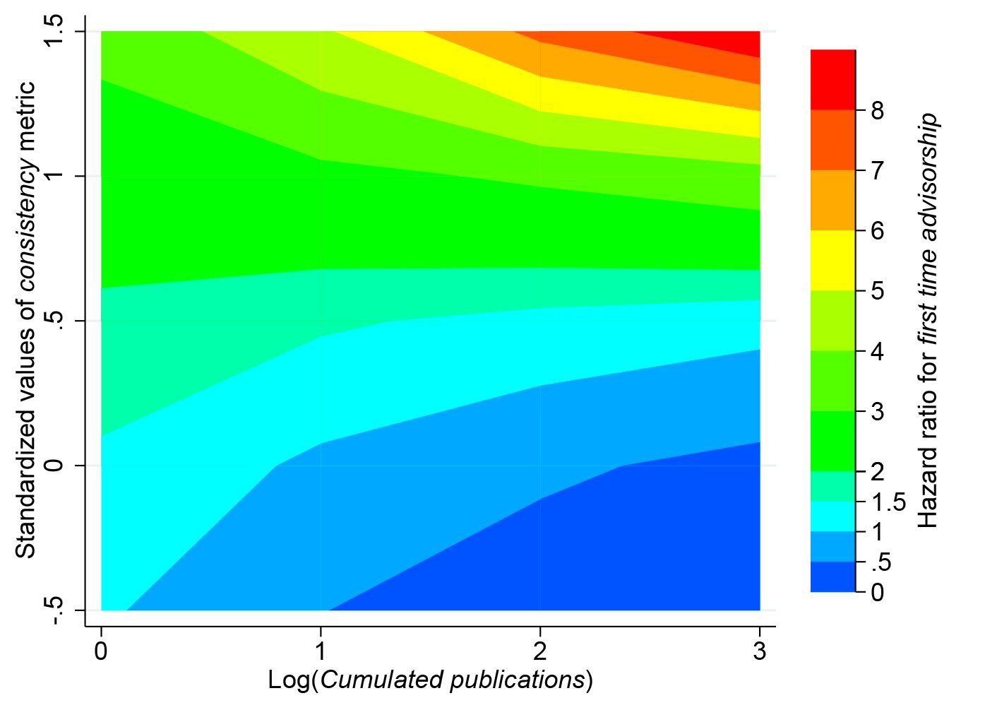 Untersucht wurden dabei verschiedene Facetten der inhaltlichen Spezialisierung der Publikationen gerade im frühen Karrierestadium: Themenwahl, Fokus, Innovationsgrad und insbesondere die thematische Konsistenz. Für die Auswertung kam eine Technik des “Unsupervised Machine Learnings”, das “Structural Topic Model” zum Einsatz, bei dem große Textmengen per Computer auf grundlegende Strukturen hin analysiert werden.