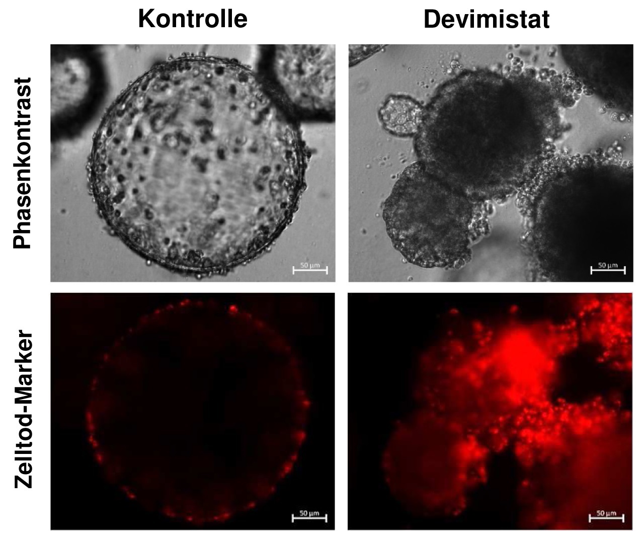 Weiterhin haben die Forscherinnen und Forscher durch eine Kombination von Zellkulturexperimenten und mathematischen Modellen gezeigt, dass Devimistat mit klinisch eingesetzten Zytostatika synergistisch wirkt. „Dieser Befund machte uns neugierig, über welchen Mechanismus Devimistat zusammen mit Zytostatika den Zelltod in Krebszellen verstärkt“, sagt Jörg Fahrer. Mit Hilfe von molekulargenetischen und zellbiologischen Untersuchungen haben sie demonstriert, dass ein Protein namens Bim eine tragende Rolle spielt, indem es die mitochondriale Form des programmierten Zelltods, der Apoptose, fördert.