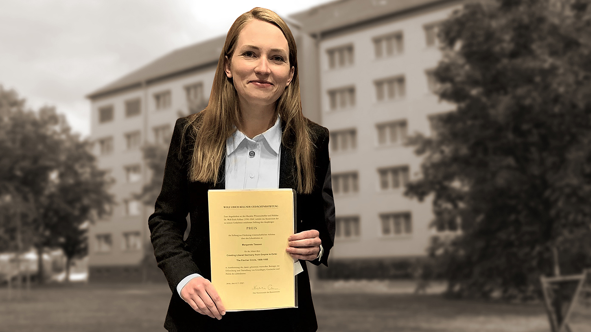 Der Preis wurde Margarete Tiessen im Rahmen des 19. Kolloquium zur Liberalismus-Forschung übergeben, das vom 4. bis 5. November 2021 an der Friedrich-Schiller-Universität Jena stattfand. Ihre Arbeit rekonstruiert auf Basis einer Fülle archivalischer Quellen und Publikationen rund um den Berliner S. Fischer Verlag die Entwicklung des Staats- und Freiheitsdenkens progressiver Liberaler von der letzten Dekade des deutschen Kaiserreiches bis hin zur Zeit des US-amerikanischen Exils der Verlegerfamilie und ihrer Autorinnen und Autoren.