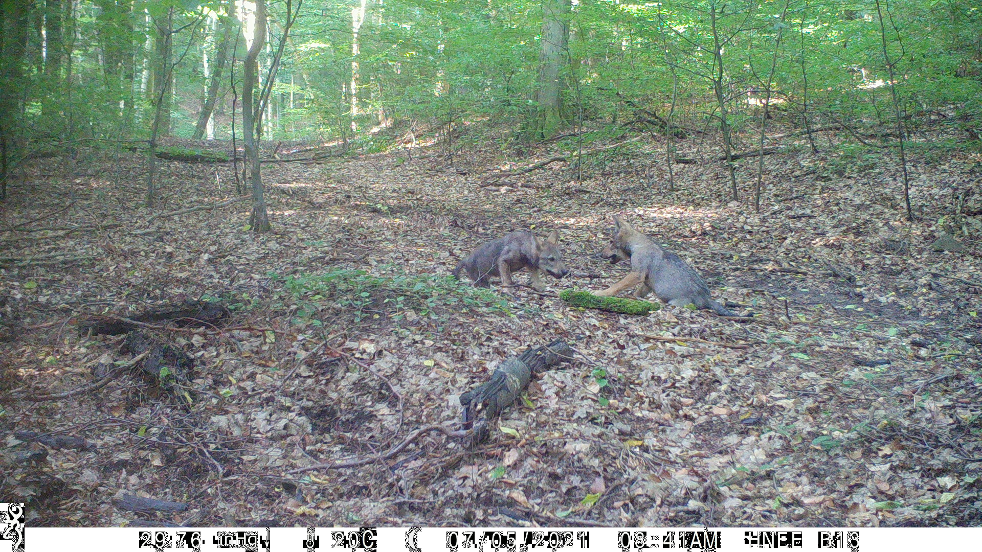 „Aktuell leben im Barnim östlich der A11 zwei eigenständige Wolfsrudel“, so Dr. Frank-Uwe Michler, der das Wolfsmonitoring im LK Barnim koordiniert. „Das Barnimer Heide-Rudel, südlich von Eberswalde, und das Parstein-Oderberg-Rudel, nördlich des Oder-Havel-Kanals.“ Im letzten Monitoringjahr 2020/2021 entstanden durch das Fotofallenmonitoring der HNEE über 3.000 Wolfsbilder. „Anhand der Fotofallenbilder wissen wir, dass in beiden Territorien im letzten Jahr erstmalig Wolfswelpen geboren wurden“, erläutert Prof. Siegfried Rieger, Leiter des FWWJ an der HNEE. Waren es im Jahr 2020 mit jeweils zwei Welpen noch vergleichsweise kleine Würfe, konnten dieses Jahr fünf (in der Barnimer Heide) bzw. sechs Welpen (in Parstein-Oderberg) durch die Wildkameras nachgewiesen werden. Aktuell leben in beiden Rudeln nachweislich neun Wölfe.
