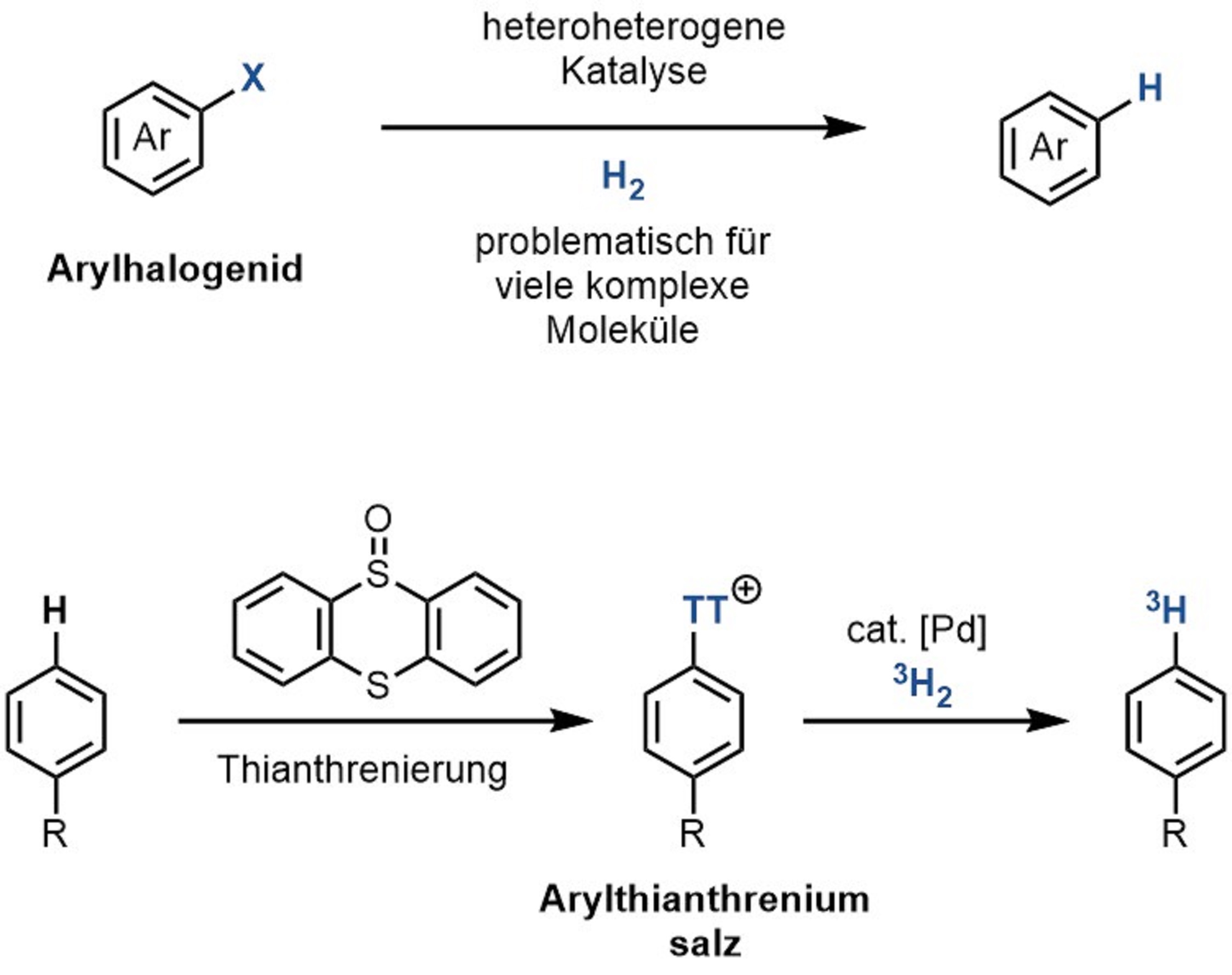Tritium 3H, ein radioaktives Isotop des Wasserstoffs, wird in der Medizinalchemie gern als Markierung verwendet, um den Verlauf eines Arzneimittels im menschlichen Körper sichtbar zu machen. Auch die Verstoffwechselung chemischer Substanzen im Körper kann durch Tritium markierte Moleküle beobachtet werden, so dass Chemiker das Verfahren gern für die Beurteilung und Testung von Arzneimittelkandidaten verwenden. Die Herstellung der radioaktiv markierten Moleküle ist jedoch herausfordernd.