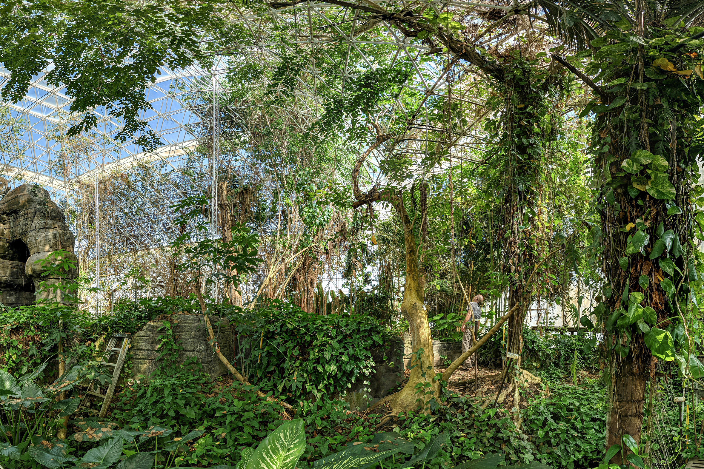 Für ihre Erkenntnisse untersuchten die Forschenden die Flüsse von H20, CO2 und flüchtigen organischen Verbindungen (VOCs), wie etwa Isopren und Monoterpene. Hierfür gaben sie markiertes 13CO2 und 2H2O in die Biosphere 2 und verfolgten dann im Verlauf des Experimentes, wie sich diese Stoffe durch die Bäume, Pflanzen und Böden verteilten. So konnten die Wissenschaftler*innen unter anderem beobachten: wie intensiv der Wasserverbrauch und -durchfluss der Pflanzen war, aus welchen Bodenregionen sie wann das Wasser nahmen und auch wie und wo CO2 und VOCs in den Pflanzen und Böden gespeichert und in die Atmosphäre ausgestoßen wurden. Erstmals wurde ein solches Markierungsexperiment in einem ganzen Wald durchgeführt, was nur innerhalb des abgeschlossenen Systems der Biosphere 2 möglich ist.
