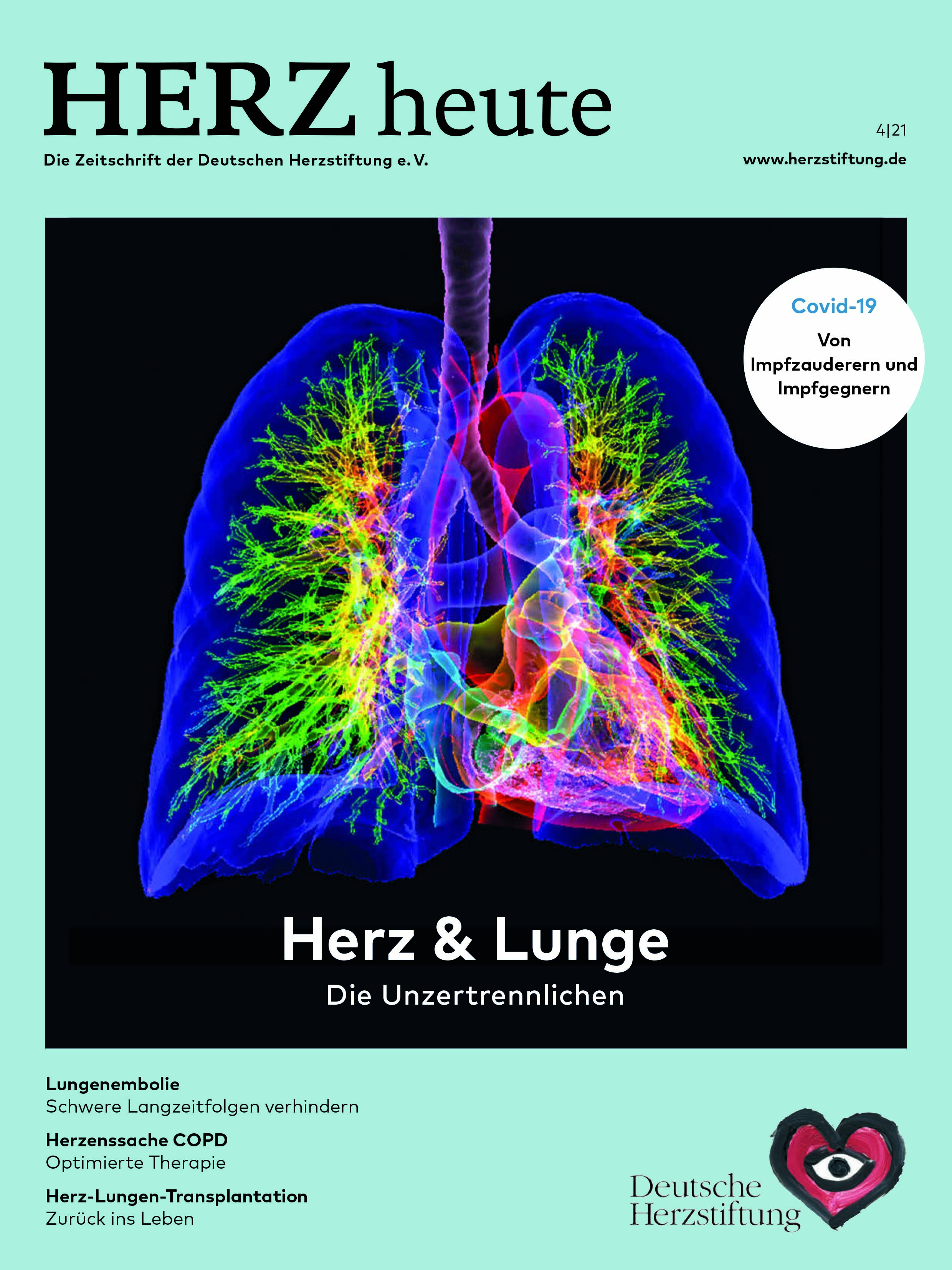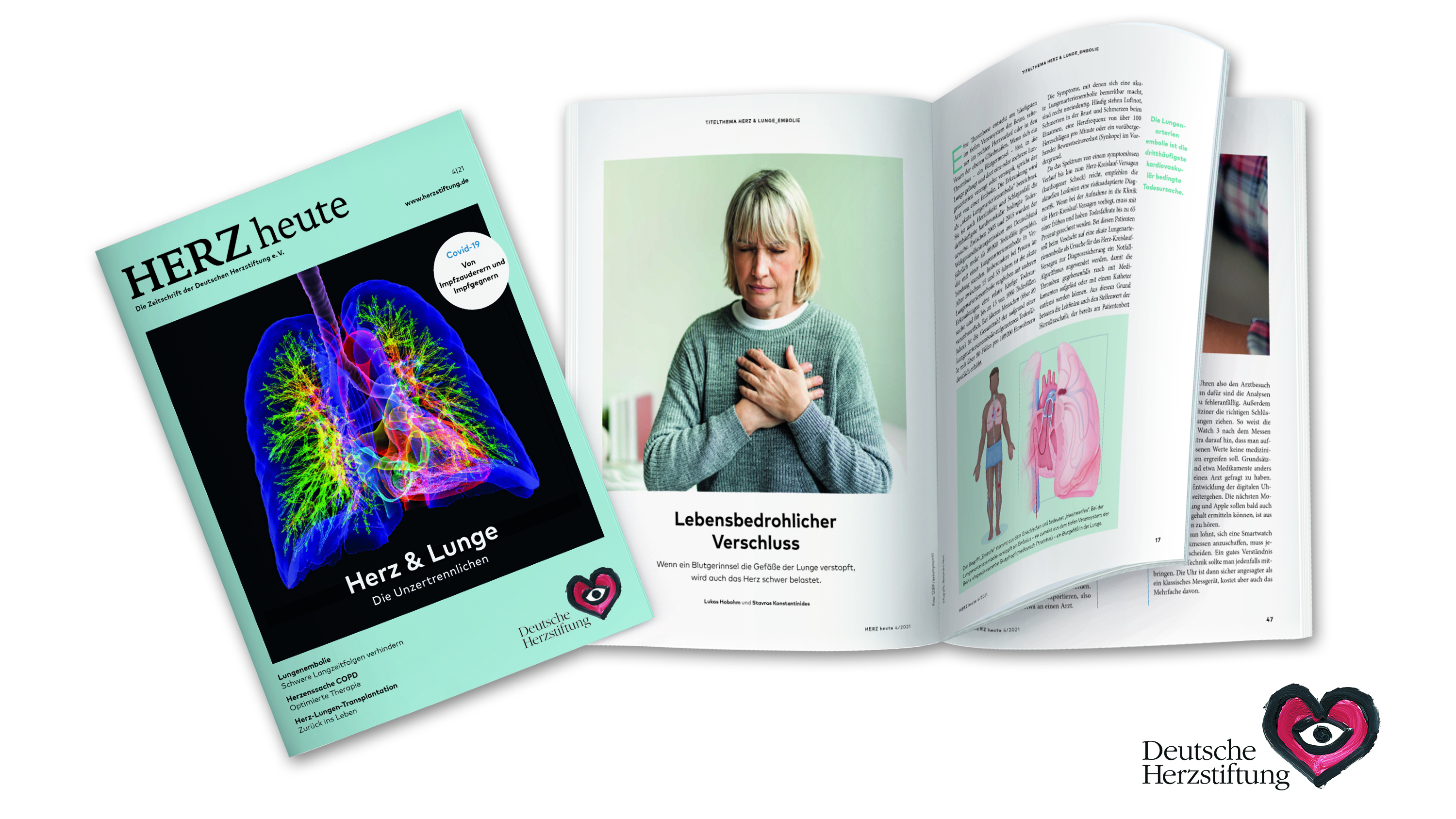 Hobohm L., Konstantinides S., Lebensbedrohlicher Verschluss, in: Deutsche Herzstiftung (Hg.), Herz & Lunge - Die Unzertrennlichen (Ausg. 4/2021), Frankfurt a. M. 2021