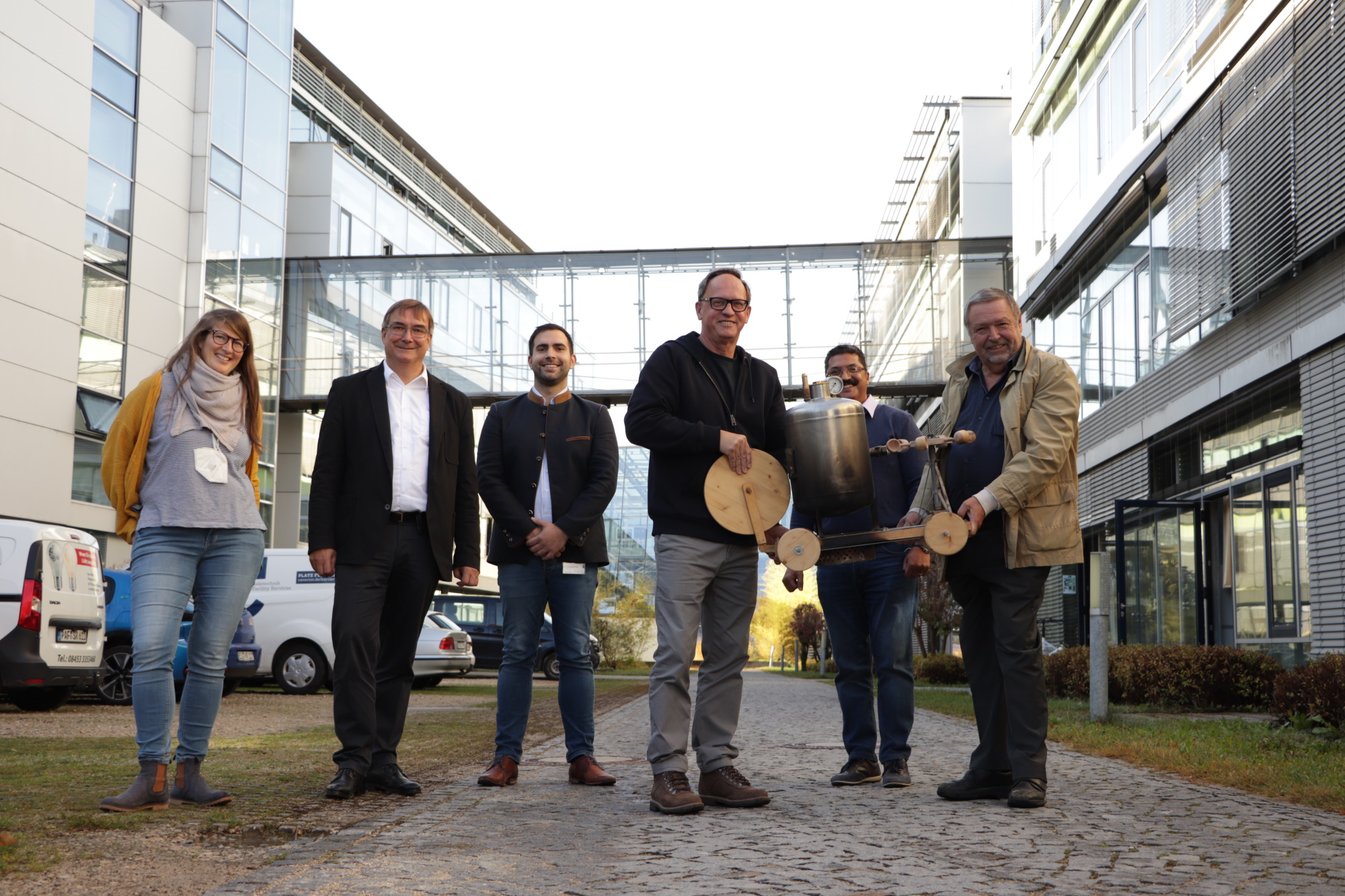 Eine Zeichnung oder einen Bauplan gab es nicht. Aber Treffers Interesse war geweckt. Er wollte wissen, ob sich dieses Fahrzeug tatsächlich fortbewegen konnte. Den Beweis dazu lieferten nun Studierende der Technischen Hochschule Ingolstadt (THI). Prof. Dr. Thomas Suchandt nutzte zusammen mit seinen Studentinnen und Studenten die Beschreibungen aus Verbiests Buch, um die Konstruktionspläne für das Automobil zu erstellen. Zunächst bauten sie das Modell aus modernen Materialien, um zu überprüfen, ob es überhaupt fährt. Sie suchten nach der passenden Holzart, experimentierten mit dem richtigen Druck und der Wassermenge. Experimentieren war die Devise. „Einige Teile flogen uns um die Ohren“, erzählt der Maschinenbau-Ingenieur, der an der THI als Vizepräsident für Forschung und Transfer zuständig ist. Die Holzarbeiten fertigten Schüler der Ingolstädter Montessori-Schule. Zeitgleich war das ganze Projekt eine Reise in die Geschichte der Technik, sagt Prof. Dr. Thomas Suchandt: „Wir haben uns mit Dingen beschäftigt, die seit Jahrhunderten nicht mehr in Gebrauch waren.“