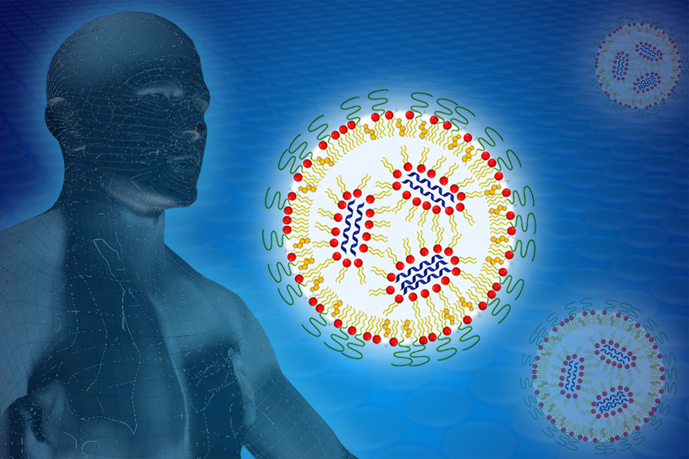 The mRNA has to be packaged appropriately in order to keep it from being broken down on the way to the cell by the ubiquitous enzymes of the human body. This is done using nanoparticles which can consist of a mixture of lipids or polymers.