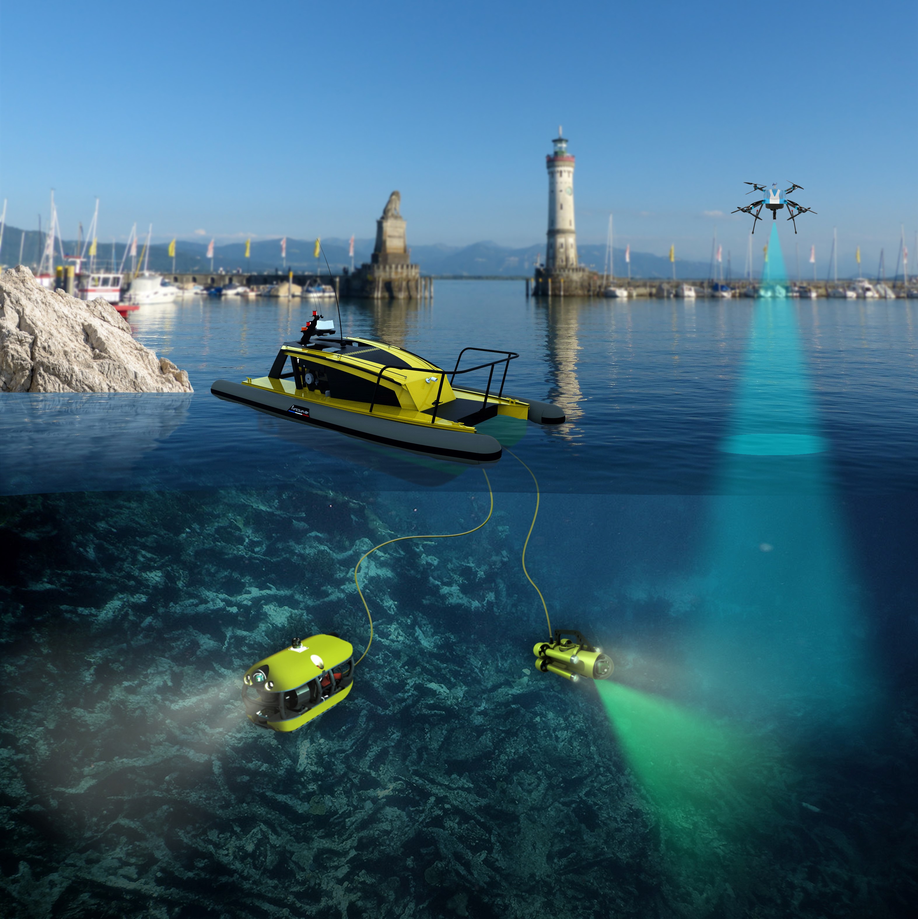 Das System setzt sich aus vier einzelnen Roboter-Komponenten zusammen: Ein autonom fahrendes Roboter-Boot führt einen ersten Scan des Meeresbodens durch und lokalisiert dabei größere Müllansammlungen. Dann wird ein Beobachtungs-Roboter ins Wasser gelassen, der den Müll in der Tiefe aufspürt und gleichzeitig weitere Informationen wie Nahaufnahmen des Meeresbodens an die Rechner liefert.