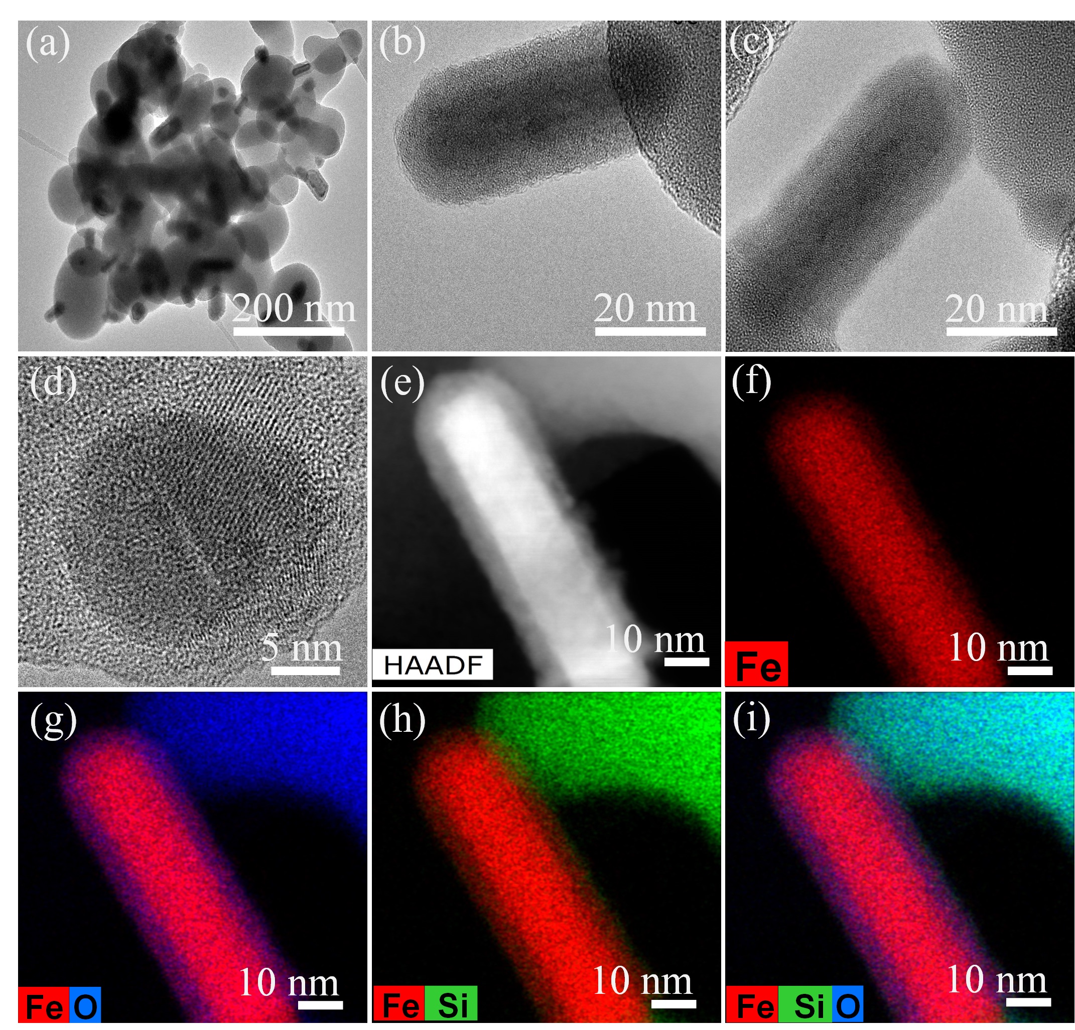 The optimal iron catalyst with the technical designation Fe/Fe-O@SiO2 is a well-defined nanostructured material that has a so-called fayalite structure at the interface between silicon dioxide and iron. Fayalite is a rare, naturally occurring iron silicate mineral. Another special feature of the developed catalyst is α-Fe nanoparticles at this interface. These nanoparticles are surrounded by an ultrathin amorphous iron(III) oxide layer, in other words "rust", which virtually grows out of the silica structure.