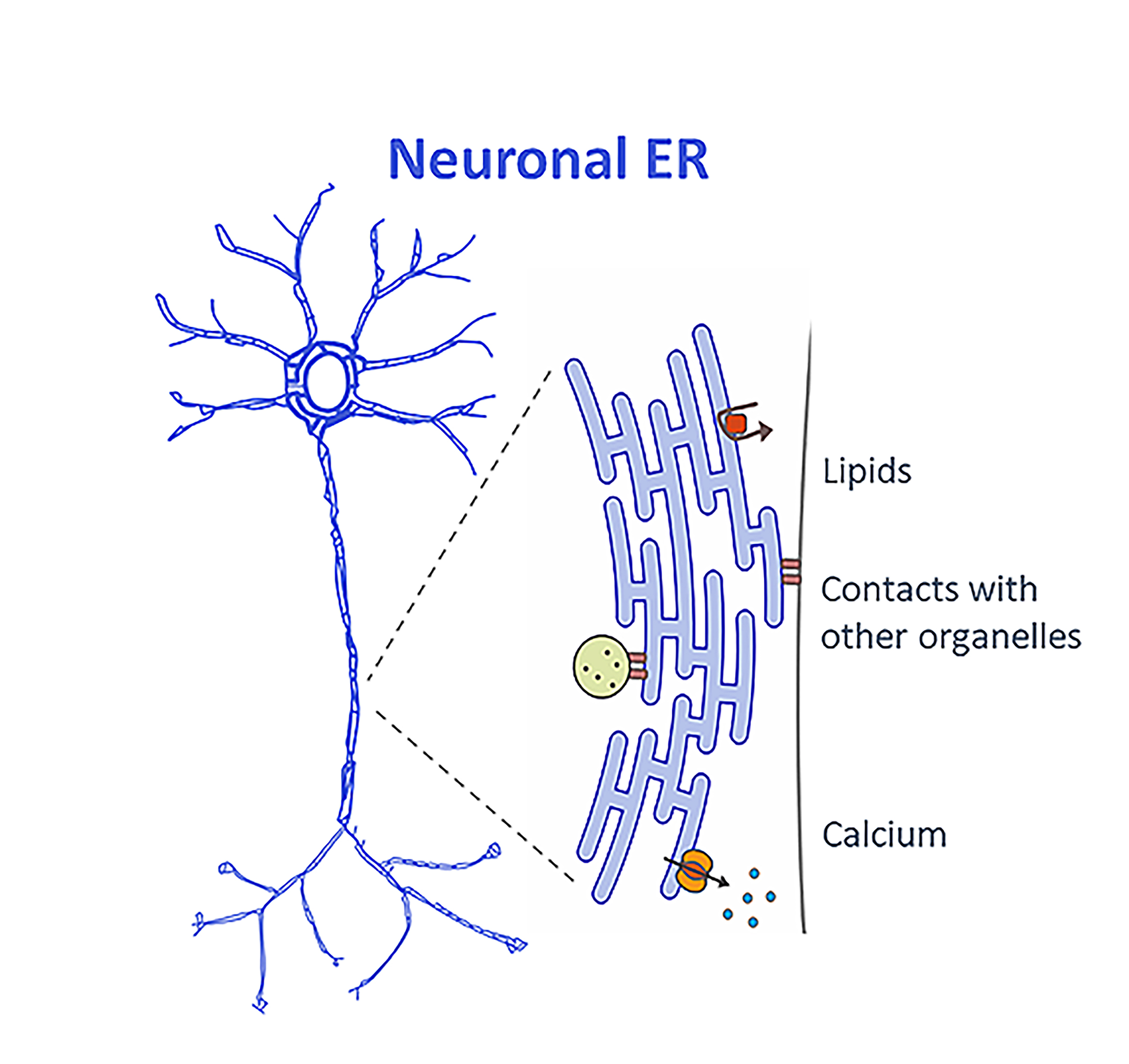 The inside of a cell is organized into separate compartments, or organelles, that fulfil specific functions. The nucleus for instance, houses our genetic material while mitochondria create the energy needed to fuel cellular processes. The endoplasmic reticulum (or ER) is the largest organelle inside our cells and serves many roles, from the production and transport of proteins and lipids, to the storage of calcium. While malfunctioning of the ER is linked to the development of neurodegenerative disorders we know very little about how this huge organelle supports the unique function of the cells in our nervous system.