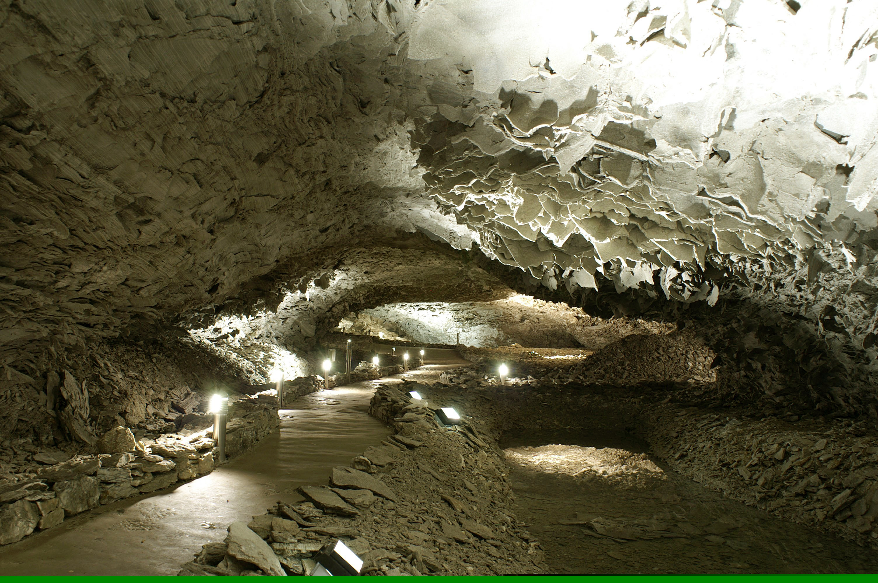 Wenn Gipslagerstätten durch Bewegungen in der Erdkruste in die Tiefe verlagert werden, wird aus dem Gips das Kristallwasser verdrängt und es entsteht das Schwestergestein des Gipses, der Anhydrit (CaSO4 ohne H20). Wie beim Gips gibt es auch beim Anhydrit aufgrund der Löslichkeit des Gesteins Verkarstung. In einer Anhydritschicht am thüringischen Kyffhäusergebirge ist auf diese Weise die Barbarossahöhle entstanden, in der das Gestein nicht (wie in Kalkhöhlen) in Tropfsteinen von der Decke hängt, sondern in großen parallelen Lappen die Wände ziert – sicherlich einer der eindrucksvollsten Gips-Orte in Deutschland. Noch spektakulärer sind die Höhlen im Grubenrevier Naica in Mexiko, vor allem die „Cueva de los Cristales“ („Höhle der Kristalle“): Hier sind in einem Erzbergwerk gewaltige Kristalle aus der Gipsvarietät Selenit entstanden, die bis zu 14 Meter lang sind und 50 Tonnen wiegen – die größten Kristalle der Erde. Die Höhle ist extrem lebensfeindlich, die Temperaturen liegen bei rund 50 Grad Celsius, die Luftfeuchtigkeit erreicht Werte von 99 Prozent. Menschen können hier nur in gekühlten Spezialanzügen und mit künstlicher Trockenluftzufuhr arbeiten, sonst droht ihnen innerhalb von Minuten der Tod.