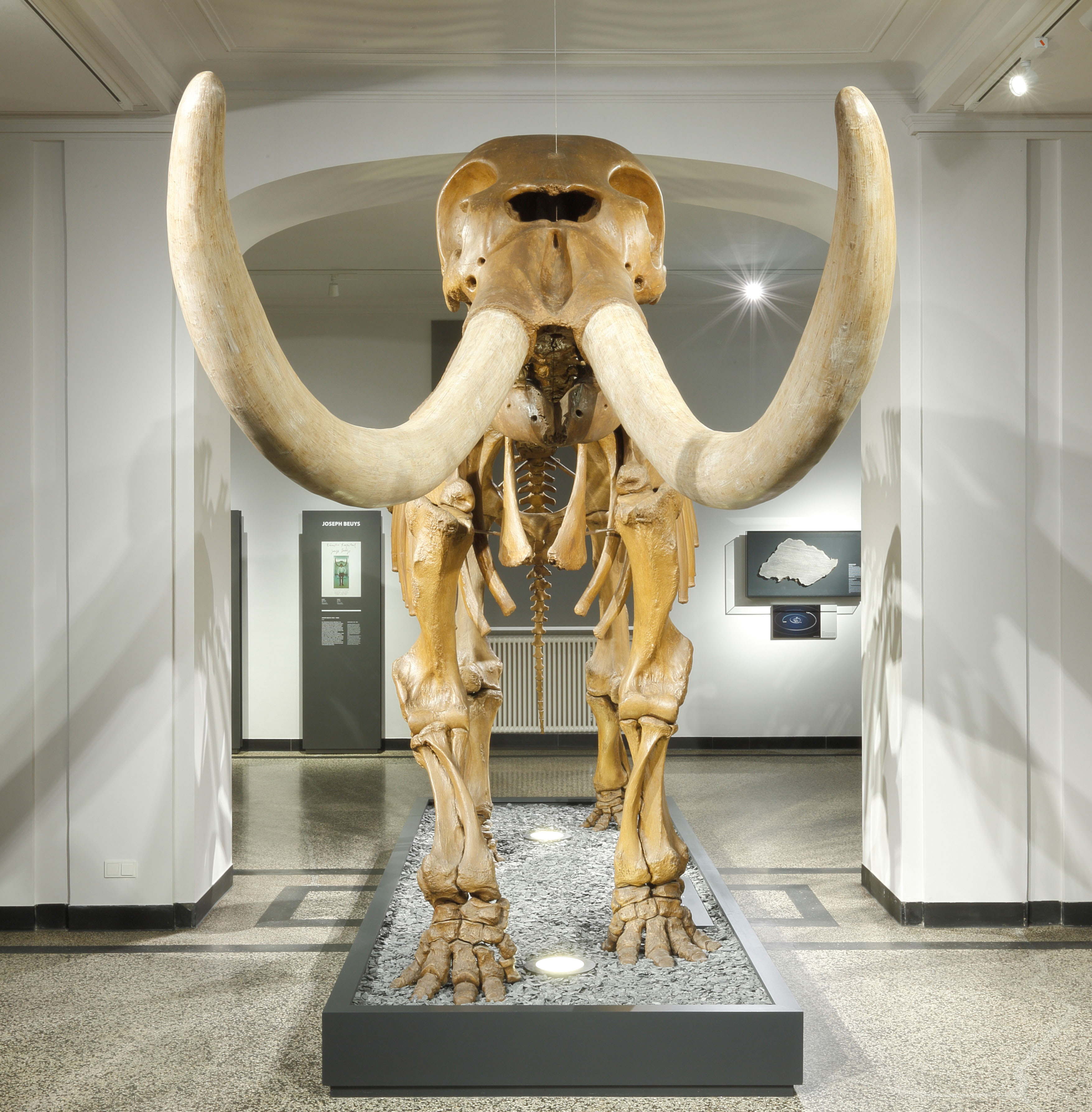 Die für Familien angelegte Schau präsentiert anhand von Objekten aus der Kunst- und Naturgeschichte von Gemälden, Zeichnungen und Fossilien die Auswirkungen des Fundes auf die Forschungs- und Geistesgeschichte. Weltberühmte Leihgaben wie Charles Willson Peale »The Artist in His Museum« aus Philadelphia und »The Exhumation of the Mastodon« aus Baltimore sind erstmals in Europa zu sehen. Der Illustrator Niels Schröder veranschaulicht diese facettenreiche Geschichte in großformatigen Wandzeichnungen.