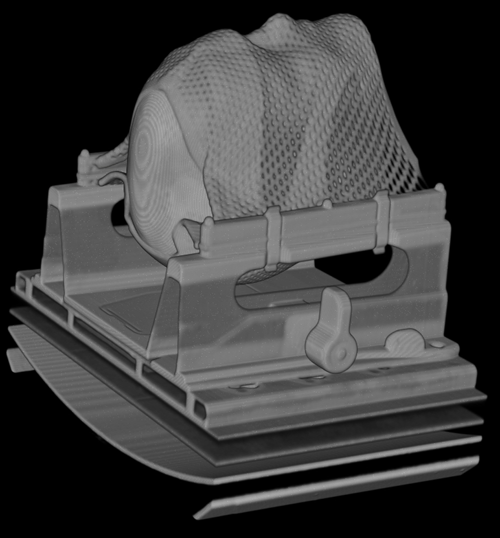 Dafür werden die Forschenden verschiedene anatomische und technische Einflussfaktoren individuell untersuchen und bewerten. In speziellen 3D-gedruckten Schädeln, die als Pseudo-Patient*innen behandelt werden, wird die angewandte Strahlendosis mit Hilfe modernster Methoden exakt gemessen. Hier kommt insbesondere eine hochauflösende, dreidimensionale Messung der Strahlendosis zum Einsatz, welche auf speziellen Polymergelen und Magnetresonanztomografie basiert. Eine besonders hochauflösende Magnetresonanz-basierte Dosisablesung wird dafür von der Arbeitsgruppe von Prof. Dr. Michael Bock von der Klinik für Diagnostische und Interventionelle Radiologie – Abteilung Medizinphysik des Universitätsklinikums Freiburg entwickelt, die Partner im Forschungsprojekt ist.