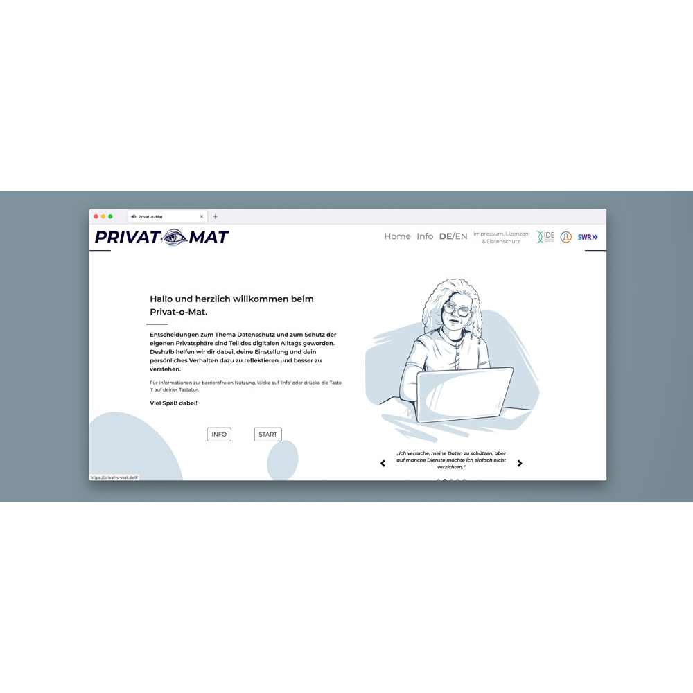 Der "Privat-o-Mat" speichert keine Daten der Nutzerinnen und Nutzer. Er orientiert sich an der Funktionsweise des "Wahl-o-Maten", der Wahlentscheidungshilfe, die von der Bundeszentrale für politische Bildung bei anstehenden Wahlen angeboten wird. Das Tool soll dabei helfen, die eigenen Entscheidungen zur Wahrung der Privatsphäre besser zu verstehen. Mit Tipps und Tricks zum Thema Datenschutz unterstützt der "Privat-o-Mat" die Nutzerinnen und Nutzer, damit sie noch besser durch den digitalen Alltag kommen und ihre Privatsphäre selbstbewusster schützen können.
