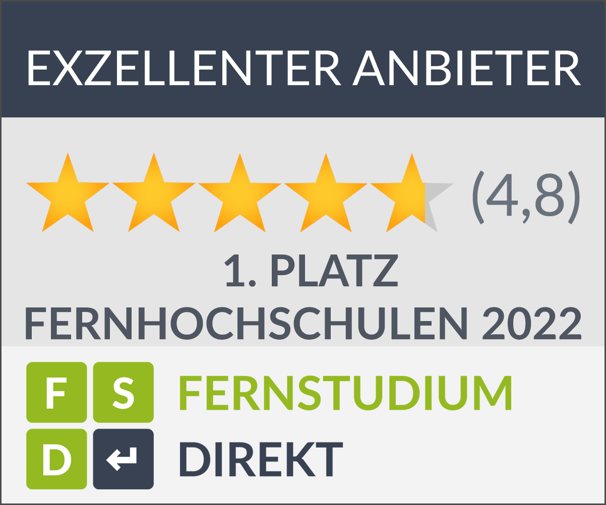 Im Schnitt erreichte die Hochschule eine Bewertung von 4,8 Sternen und belegt damit den ersten Platz im Segment „Fernhochschulen“.