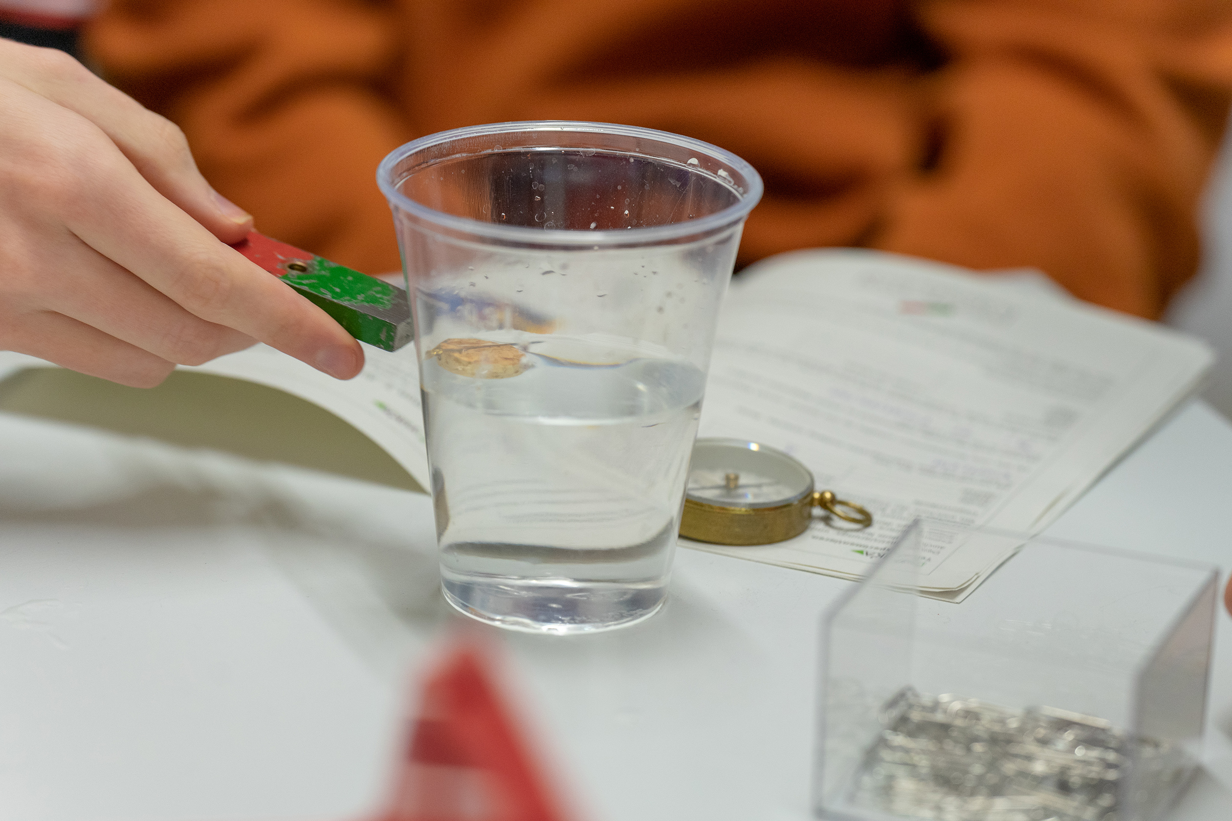 An fünf Stationen mussten die Schülerinnen und Schüler in Kleingruppen Aufgaben lösen, Experimente durchführen und ihr Wissen anschließend in einem Quiz auf die Probe stellen. In den Aufgaben ging es um Fragen wie: Welche Eigenschaften haben Magneten? Wie sind sie aufgebaut? Oder: Wie funktioniert die Magnetisierung? Aufgeteilt in zwei Räume hatten die Schülerinnen und Schüler rund drei Stunden Zeit, sich intensiv mit den Phänomenen des Magnetismus auseinanderzusetzen. Und das taten sie mit großer Begeisterung.