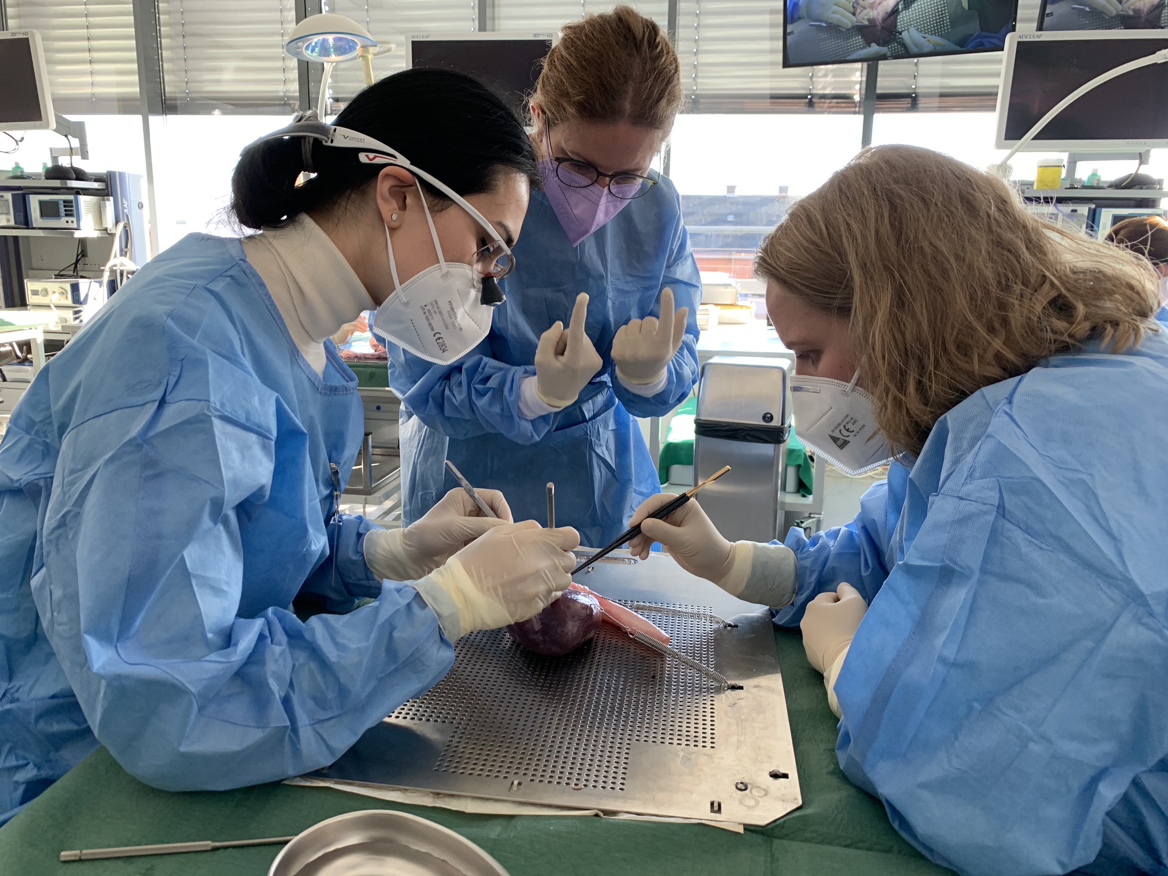 Erstmalig veranstaltete das Netzwerk der Herzchirurginnen das speziell auf den weiblichen Nachwuchs in der Herzchirurgie ausgerichtete Seminar Herzchirurgie-Praxis: Frauen trainieren Frauen. Im Langenbeck-Virchow-Haus konnten zwölf Assistenzärztinnen in fortgeschrittener Weiterbildung und junge Fachärztinnen die persönliche Weiterentwicklung der individuellen herzchirurgischen Operationstechniken in Form von Hands-on-Übungen am Schweineherz trainieren. Privatdozentin Dr. Gloria Färber verantwortet dieses praktische Seminar: „Hier wurden sowohl verschiedene Anastomosen-Techniken aus dem Bereich der koronaren Bypass-Chirurgie als auch unterschiedliche Optionen zur Aorten- und AV-Klappen-Chirurgie individuell zugeschnitten in Kleingruppen trainiert. Die praktischen Einheiten wurden auf erfrischende Weise durch kurze Theorie-Parts und durch interaktives Coaching rund um das Thema Soft-Skills, Karriere und Self-Marketing ergänzt.“ Als weitere erfahrene und etablierte Herzchirurginnen begleiteten Prof. Dr. med. Sabine Bleiziffer, Prof. Dr. med. Claudia Schmidtke, Privatdozentin Dr. med. Julie Cleuziou und Dr. med. Jasmin Hanke das Seminar als Referentinnen und Tutorinnen. Dr. med. Shirin Mansouri und Sabine Schicke unterstützten mit Einblicken aus dem Bereich Coaching, Karriere und Marketing. „Bereits beim ersten Seminar hätten wir die dreifache Teilnehmerinnenzahl schulen können. Wir haben uns jedoch bewusst für kleine Ausbildungseinheiten entschieden, die wir gezielt trainieren können“, erklärt das Team des Netzwerk Herzchirurginnen. „Weitere Workshops sind geplant, um den Anfragen gerecht zu werden.“