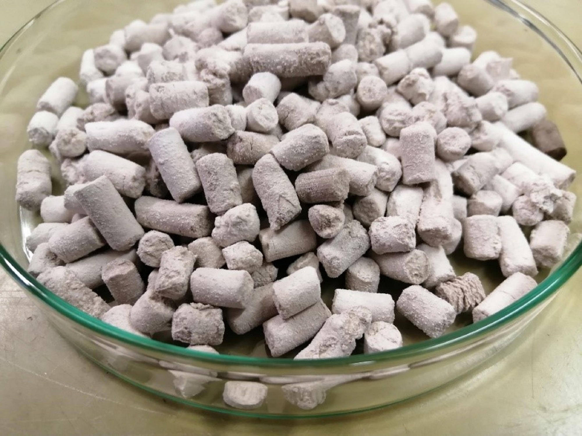 Viele chemische Produkte entstehen durch die Verwendung von Katalysatoren, die eine bestimmte Reaktion beschleunigen und dabei selbst erhalten bleiben. Ein Beispiel ist die Alkylierung von Benzol mit Propylen mit der Folgereaktion zum Phenol – einer Grundchemikalie zur Herstellung von Kunststoffen, Auto-Teilen, Lacken oder Beschichtungen. Weltweit werden jährlich über 11 Millionen Tonnen Phenol hergestellt (Quelle: L. Fernández, Global phenol market volume 2015-2026, AgileIntel Research, ChemIntel360, 2021 // www.stastista.com). „Als Katalysator werden Pellets auf Basis von Siliziumdioxid verwendet, die mit Phosphorsäure imprägniert sind. Während der Produktion verschleißen die Katalysatoren und es kommt zu Ablagerungen von Kohlenstoff auf der Oberfläche der Pellets. Dadurch sinkt ihre katalytische Aktivität drastisch. Nach ungefähr einem Jahr werden die Katalysatoren entsorgt“, erklärt Dr. Peter Fröhlich.