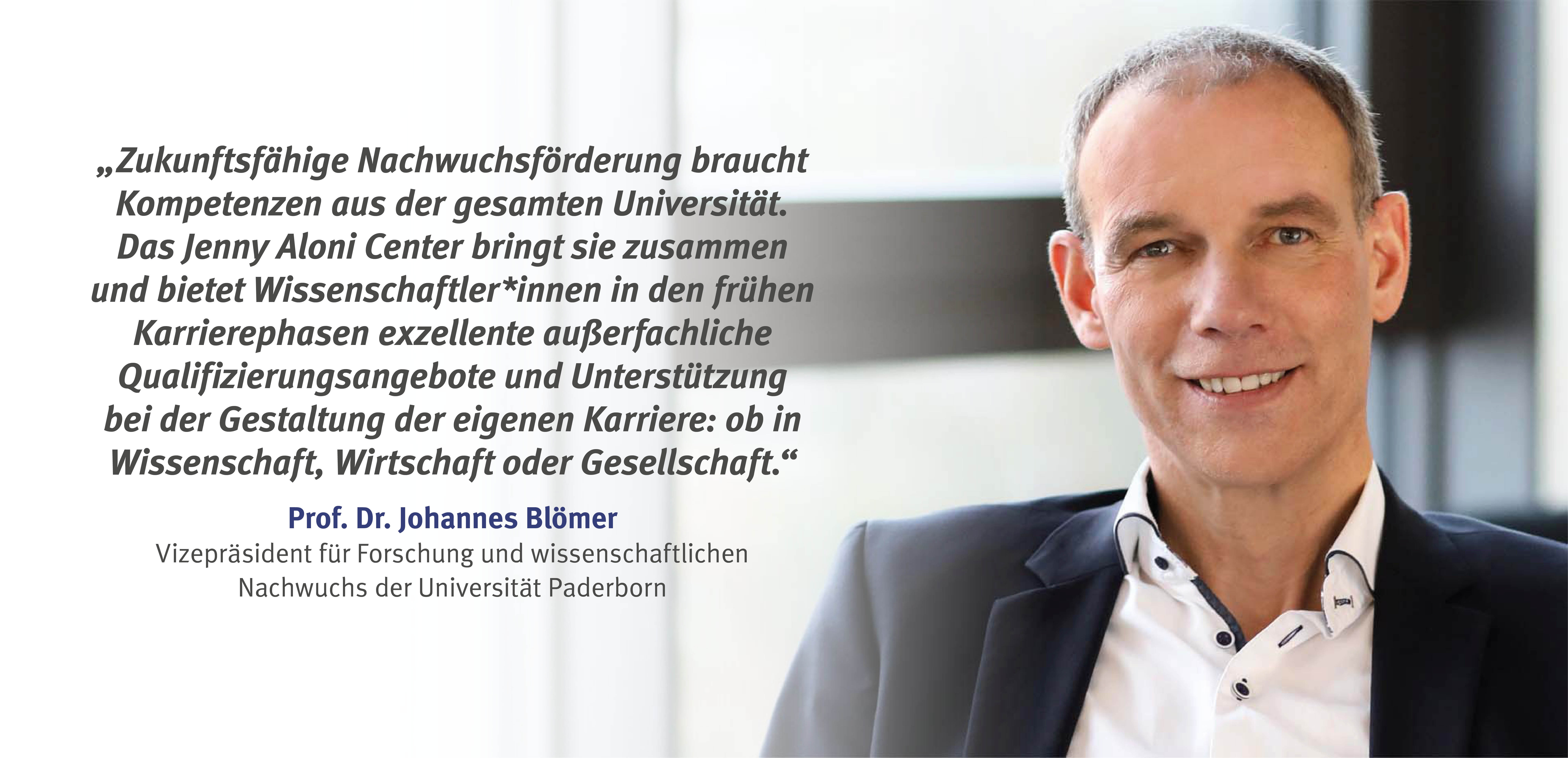 Prof. Dr. Johannes Blömer, Vizepräsident für Forschung und wissenschaftlichen Nachwuchs an der Universität Paderborn, freut sich, die Gründung der Dachorganisation bekanntzugeben: „Die kontinuierliche Weiterentwicklung von Forschung und Lehre ist ein zentrales Anliegen der Universität Paderborn. Für unsere Universität wird das Center ein Ort der interdisziplinären Begegnung sein, um auch für die Wissenschaft das Verbindende in der Diversität zu fördern und damit neue Impulse für die Forschung an der UPB zu generieren. Wir haben das Netzwerk unter die ‚Schirmherrschaft‘ von Jenny Aloni gestellt – einer außergewöhnlichen Persönlichkeit, die der Universität Paderborn in besonderer Weise verbunden war“.