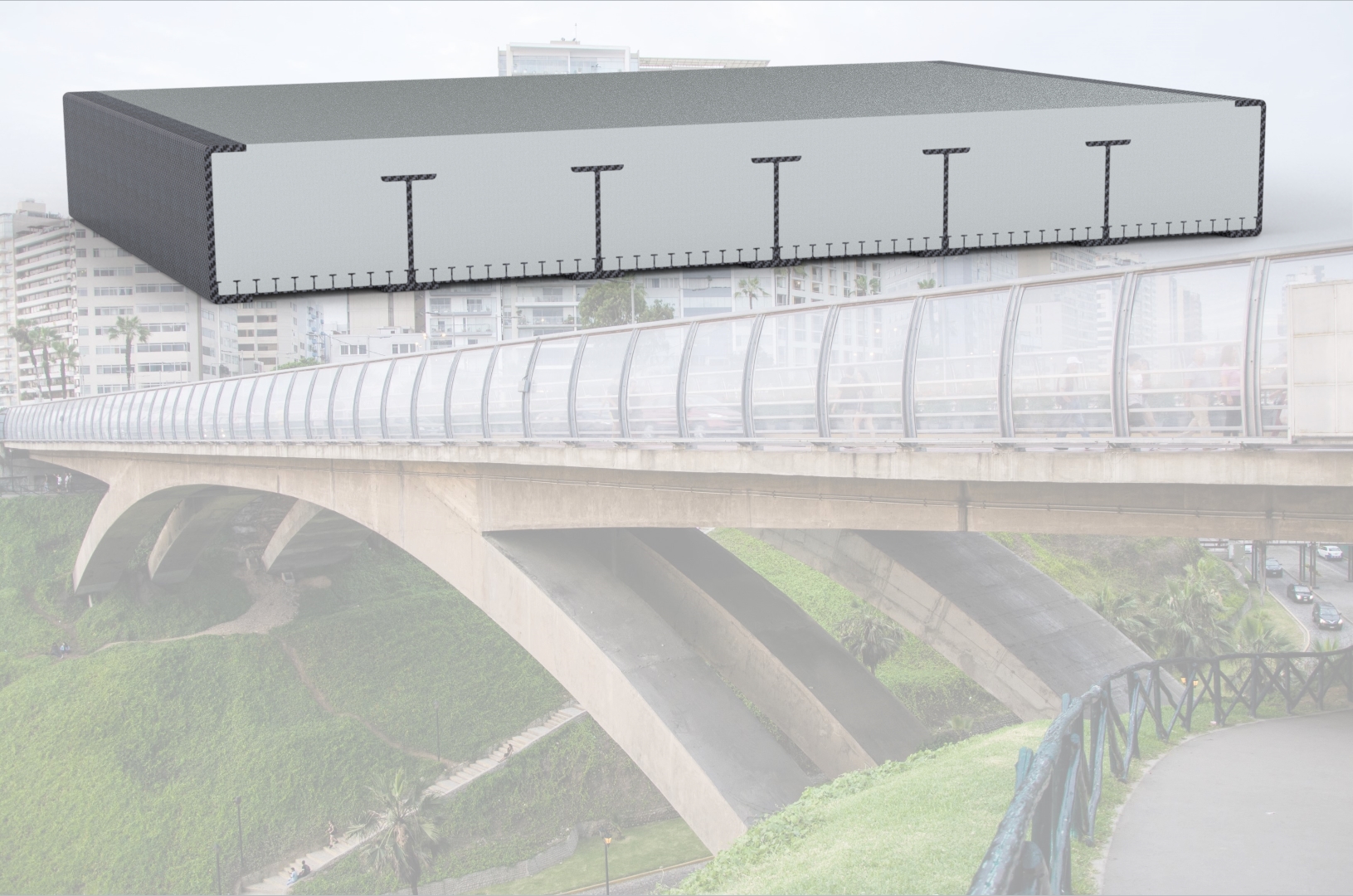 Auf Basis von hochbelastbaren Faserverbund-Kunststoffen soll ein modularer und flexibel einsetzbarer Baukasten für eine selbsttragende, integrale Schalung entwickelt werden. Eine innovative, integrierte Sensorik soll zusätzliche Informationen zu dem Zustand des Betons sowie des Bauwerks liefern. Das neue Schalungssystem soll eine erheblich schnellere Umsetzung von Brückenbauvorhaben und damit deutlich geringere Beeinträchtigung des umliegenden Straßenverkehres ermöglichen. Ferner soll eine Lebensdauerverlängerung der Beton-Bauwerke erreicht werden, so dass die Lebenszykluskosten der Brücken reduziert werden können.