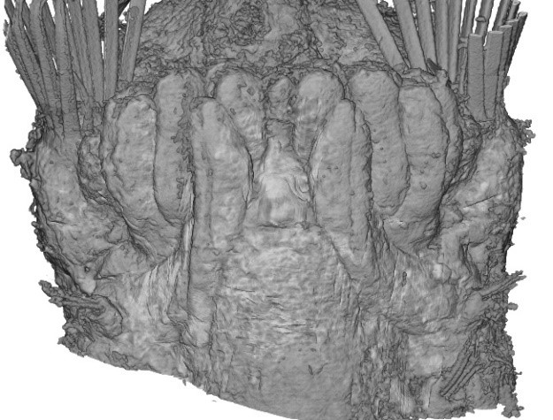 „Die Bestimmung und Beschreibung von Anobothrus konstantini sp. nov. ähnelte einer Detektivarbeit, denn die Untersuchungen des zerbrechlichen und empfindlichen Körpers brachten ein paar Schwierigkeiten mit sich“, erläutert Friederike Säring ihre Arbeit. Verschiedene bildgebende Verfahren, unter anderem ein 3D-bildgebendes Verfahren (die so genannte Mikro-Computer-Tomographie, auch als Mikro-CT bezeichnet), ermöglichten die exakte Untersuchung des Wurmes. Nur so konnten Säring und Kollege Andreas Bick Bruchstellen von Kiemen, also fadenförmige Atmungsorgane, am vorderen Ende feststellen - unentbehrlich für die richtige Beschreibung der Art (Bild 2).