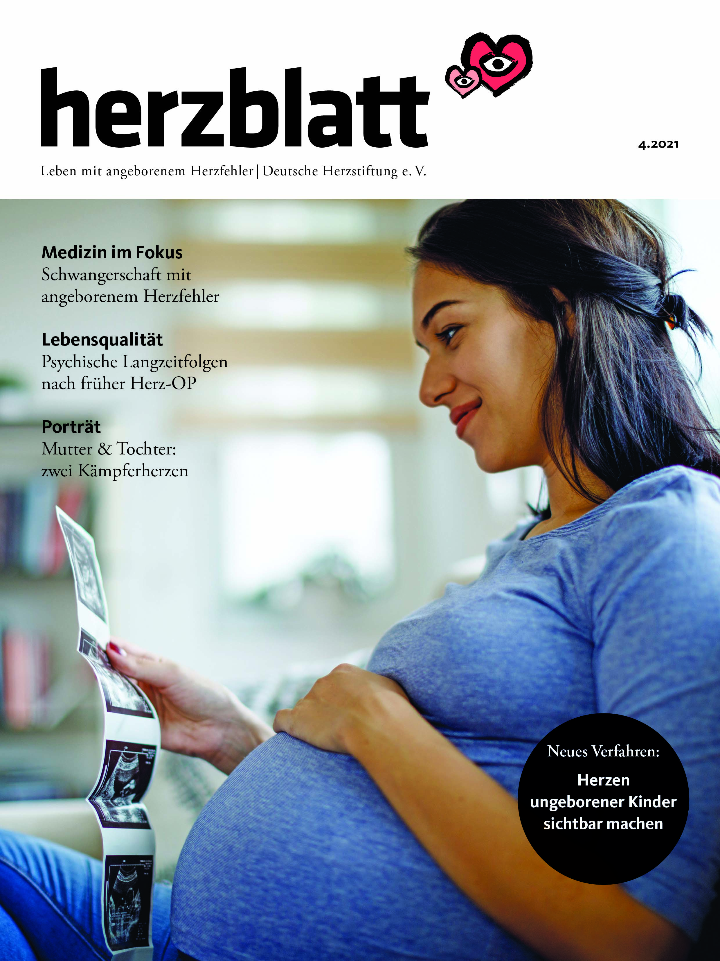 Das Magazin für ein Leben mit angeborenem Herzfehler „herzblatt“ erscheint viermal im Jahr. Mit ihrer Publikation „herzblatt“ richtet sich die Kinderherzstiftung der Deutschen Herzstiftung gezielt an die betroffenen Kinder, Jugendlichen und deren Eltern sowie an Erwachsene mit angeborenem Herzfehler. Weitere Infos zu den psychischen Langzeitfolgen nach früher Kinderherz-OP sowie zum Thema Schwangerschaft mit angeborenem Herzfehler und vielen weiteren Themen bietet die Ausgabe 4/2021 von „herzblatt“. Ein kostenfreies Probeexemplar ist unter Tel. 069 955128-400 oder per E-Mail unter bestellung@herzstiftung.de erhältlich.