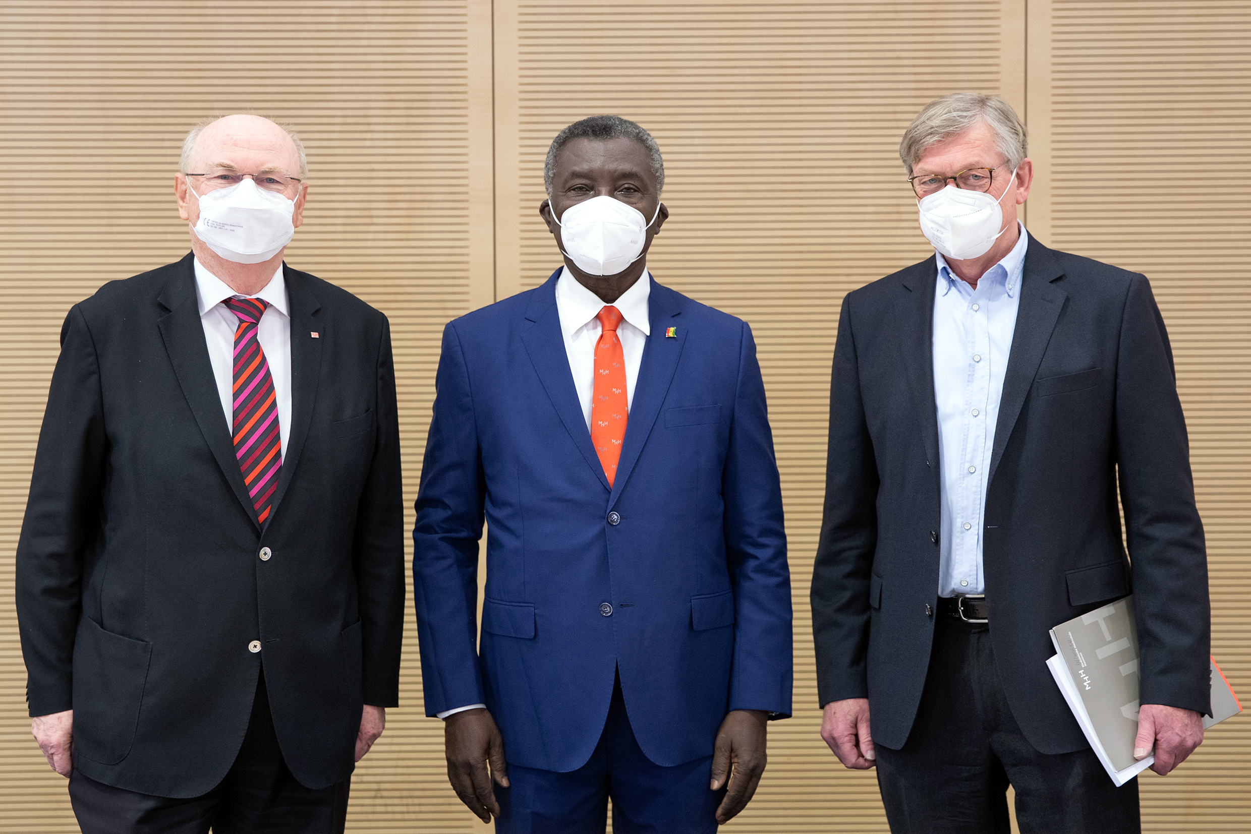 A delegation from Ghana in West Africa led by Professor Kwabena Frimpong-Boateng is currently visiting Hannover Medical School (MHH). During their visit, the West African experts have focused their attention on SARS-Cov-2/COVID 19 research and treatment at MHH. Professor Frimpong-Boateng was asked by the Ghanaian President to develop a strategy for setting up a vaccine production factory in the country. Before the delegation now arrives in Lower Saxony, they visited the BioNTech company in Mainz. "We are pleased to be able to present our colleagues from Ghana with insights into our findings and structures relating to the COVID-19 pandemic. Infectiology is known to be one of our focal points in research and patient care, emphasises MHH President Professor Dr Michael Manns.
