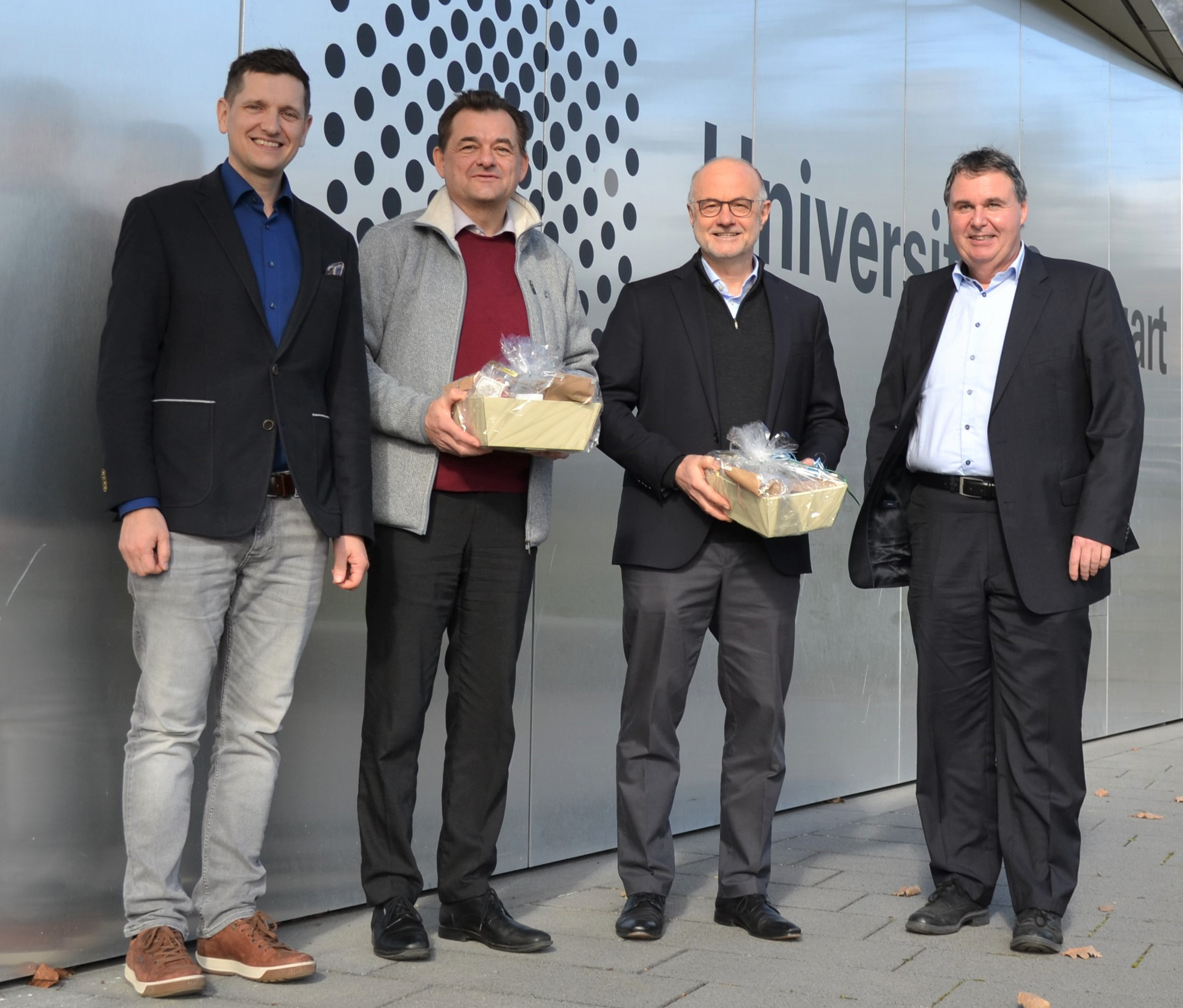 Nach einigen – pandemiebedingten – virtuellen Sitzungen fanden der Aufsichtsratsvorsitzende der TLB GmbH, Prof. Dr. Alexander Brem, und der Geschäftsführer, Dr.-Ing. Hubert Siller, nun auch Gelegenheit, sich von zwei ehemaligen Mitgliedern des Aufsichtsrats der TLB GmbH offiziell zu verabschieden.