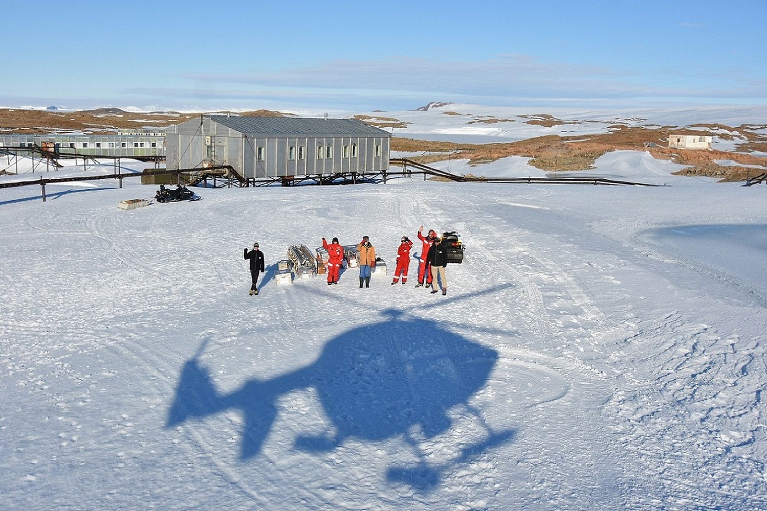 Im Arbeitsgebiet kamen die sechs Wissenschaftler in einem Gebäude der in diesem Südsommer nicht besetzten russischen Antarktisstation „Molodeshnaya“ unter. Allerdings erfuhren sie tatkräftige Unterstützung durch die Kollegen der belarussischen Station „Gora Vechernyaya“ (dt. Abendberg), die sich in ca. 15 km Entfernung befindet. „Die Operation zum Transport der Personen und der wissenschaftlichen Ausrüstung vom Schiff zum Arbeitsgebiet in den Thala-Bergen umfasste zehn Helikoperflüge und dauerte ungefähr zehn Stunden“, berichtet Kappelsberger. Aufgrund der Meereisbedeckung musste die „Polarstern“ ca. 35 km entfernt von Molodeshnaya auf Position gehen. Bei der Abholung erlaubte das aufgebrochene und durch Wind und Strömung nach Norden abtransportierte bzw. aufgeschmolzene Meereis eine Annäherung bis auf ca. 4 km. Die drei GPS-Messpunkte, die zwischen 1,5 und 18 km von der Station Molodeshnaya entfernt liegen, erreichten die beiden Wissenschaftler mit Skidoos. „Dafür war es unerlässlich, dass wir gute Wetterbedingungen und ausreichend Kontrast für eine gute Sicht hatten“, ergänzt Heidrich-Meisner.