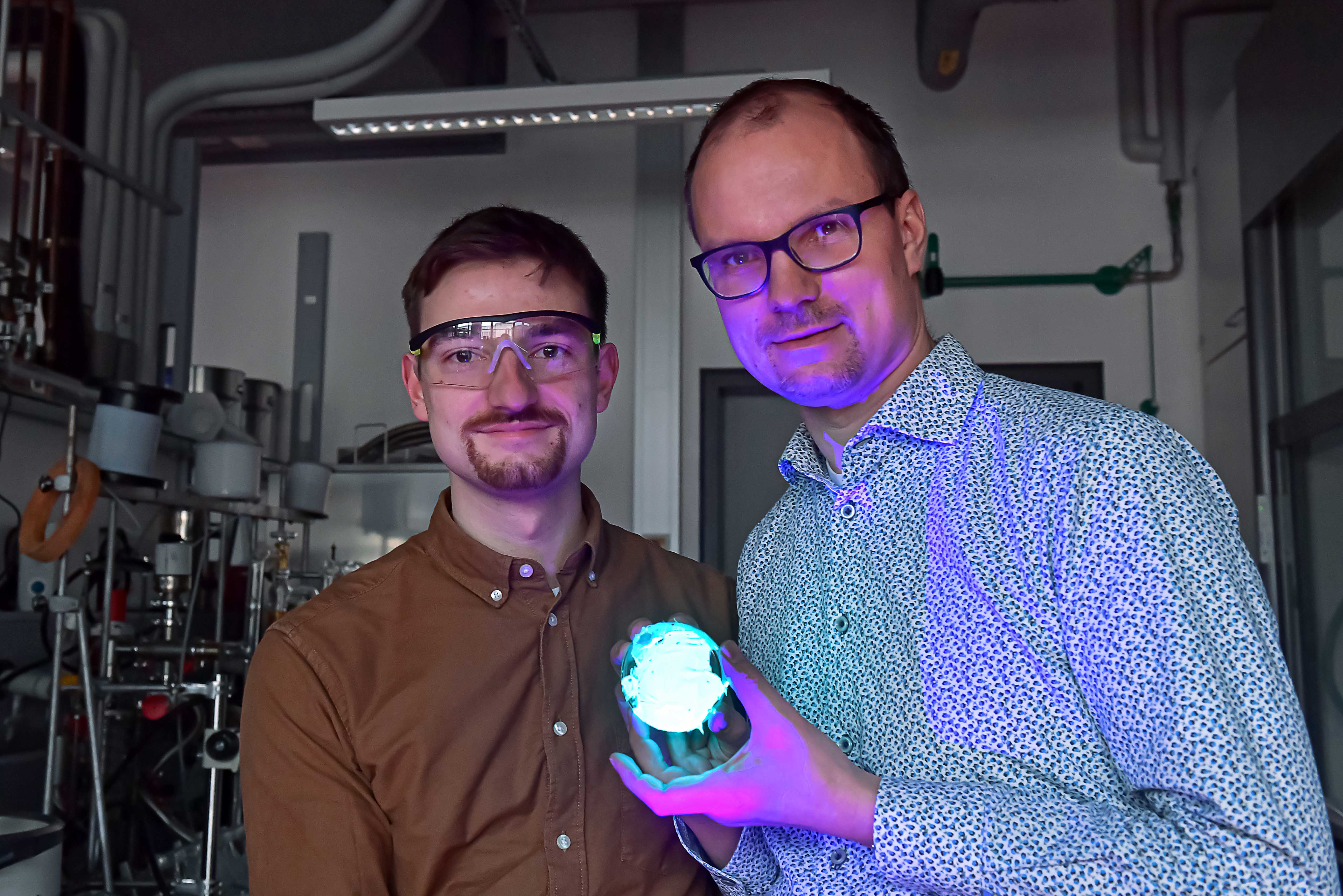 „Diese Entdeckung war buchstäblich Serendipity – ein reiner Glücksfund“, erklärt Robert Kretschmer, Juniorprofessor für Anorganische Chemie der Katalyse der Friedrich-Schiller-Universität Jena. „Eigentlich wollten wir mit der Substanz Katalyse betreiben. Aber meinem Team fiel sehr schnell auf, dass die Substanz äußerst stark fluoresziert. Also sind wir dem nachgegangen und haben diese einzigartige Eigenschaft nachgewiesen.“