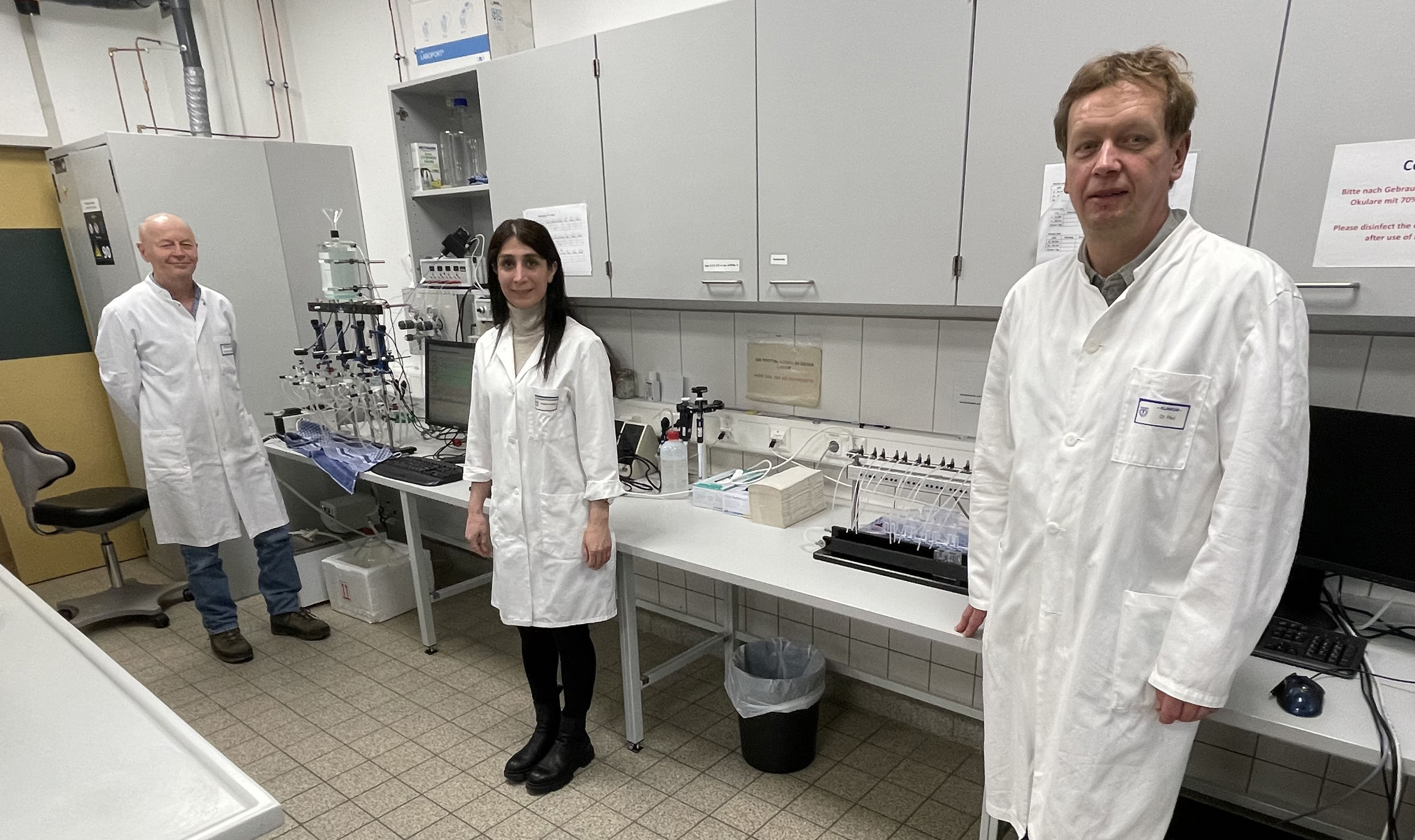 Die beiden Forscher nutzten die Kooperationsmöglichkeiten des Forschungscampus Mittelhessen, um die Bürstenzellen der Maus zellbiologisch zu charakterisieren. Wodurch werden die Zellen angeregt? Wie reagieren sie darauf? Um dies herauszufinden, stimulierte das Team in einem ersten Schritt die Zellen mit blauem Licht im Mausmodell und studierte, welche Auswirkung dies hat. Im zweiten Schritt ermittelten die Wissenschaftlerinnen und Wissenschaftler, was die Aktivität der Bürstenzellen hervorruft.