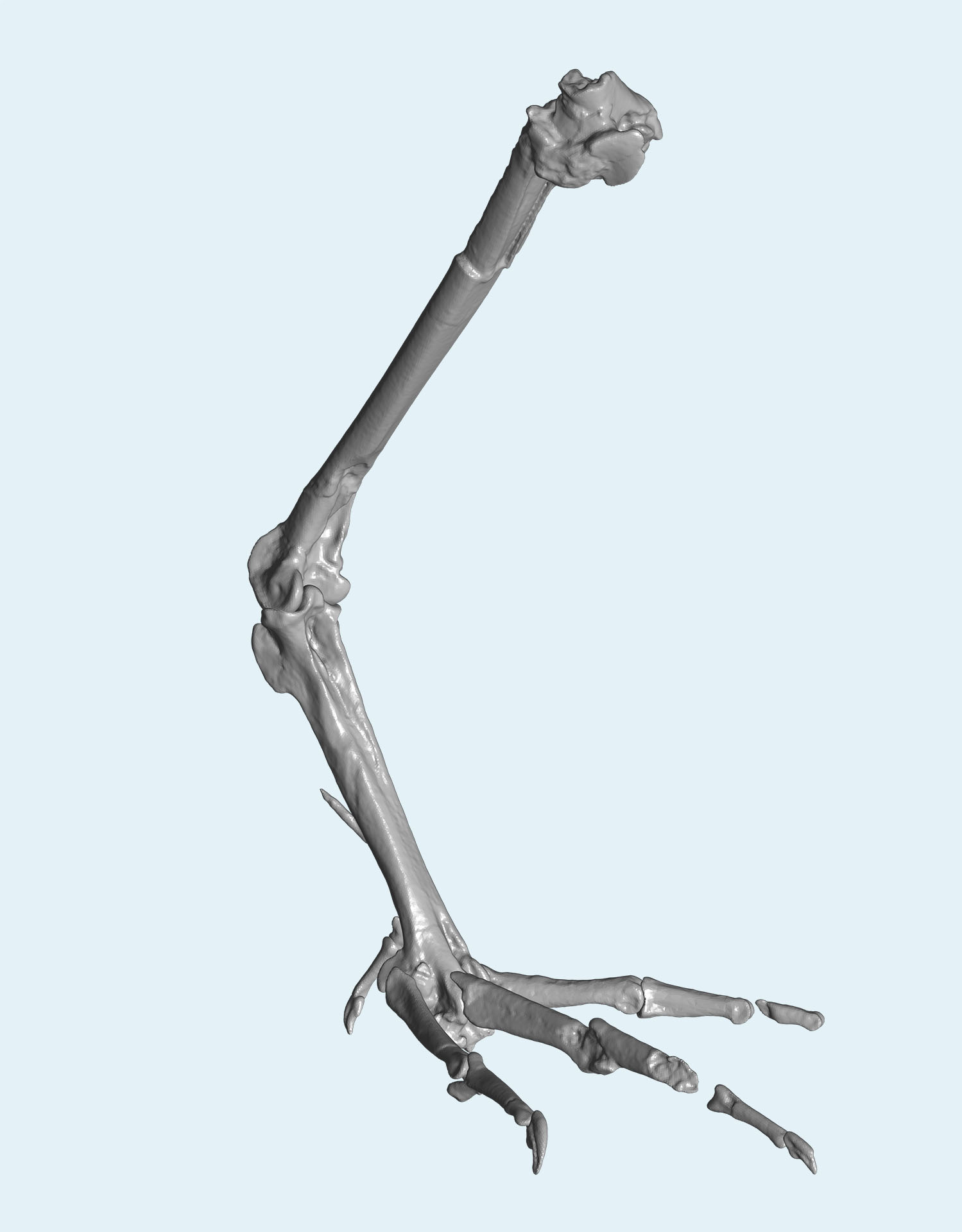 Ungewöhnlich an dem Fund, der 2020 bei Grabungen freigelegt wurde, ist das komplett erhaltene Bein, wie Professorin Madelaine Böhme vom Senckenberg Center for Human Evolution and Palaeoenvironment an der Universität Tübingen berichtete: „Derartig vollständige Funde sind bei fossilen Gänsevögeln weltweit sehr selten.“ Besonders aufschlussreich für die Lebensweise von Allgoviachen tortonica ist die Form ihrer Krallen.