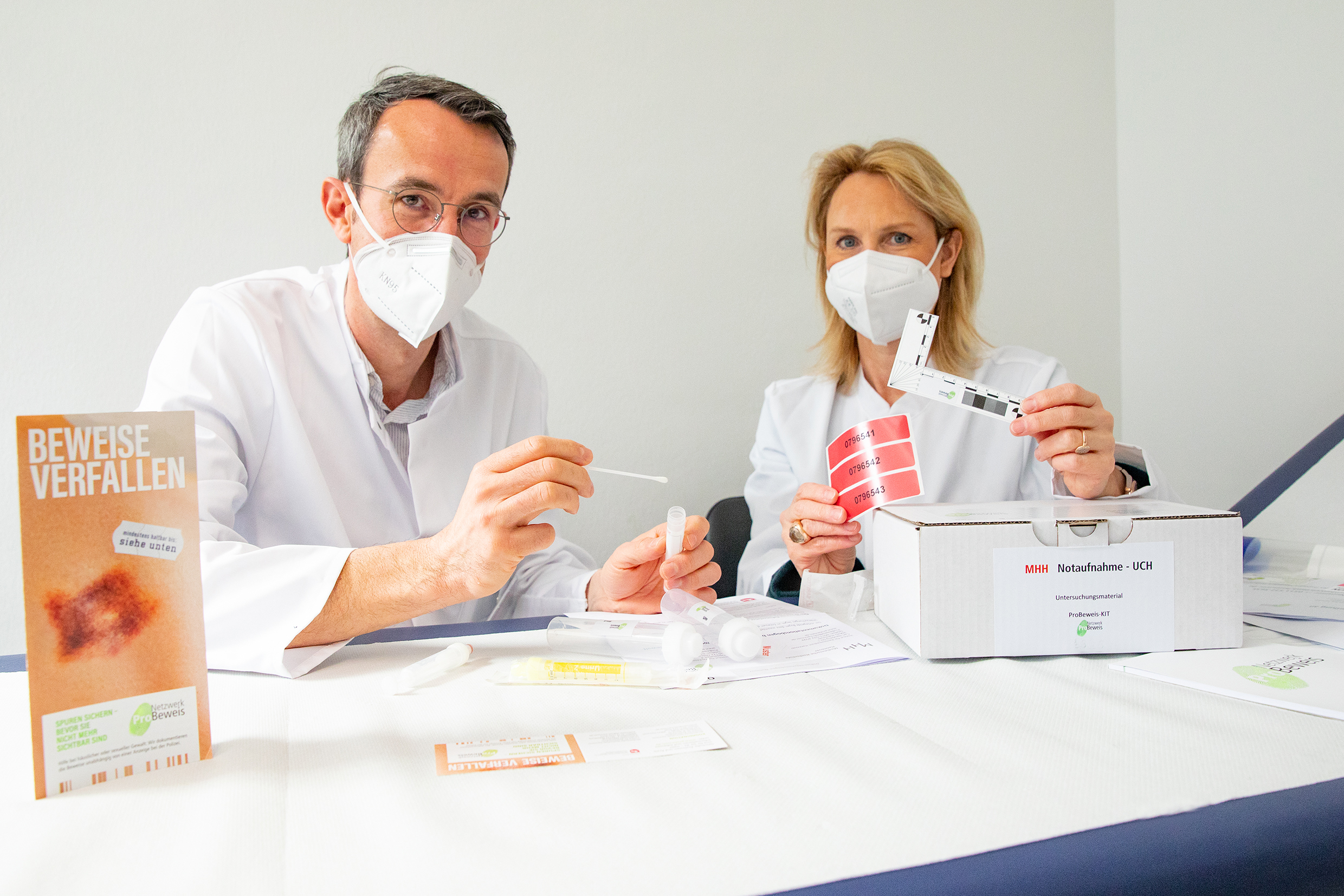 Viele Frauen und Männer erstatten direkt nach der Tat keine Anzeige, weil sie sich schämen, bedroht werden oder Angst haben, das belastende Gerichtsverfahren eventuell nicht durchstehen zu können. „Für ein mögliches späteres Gerichtsverfahren ist es aber wichtig, sofort nach der Tat fachgerecht und gerichtsfest Spuren wie Würgemale, Hämatome oder DNA-Material zu sichern und medizinische Befunde exakt zu dokumentieren“, erklärt Professorin Debertin. In der MHH-Notaufnahme ist das ab sofort möglich. Auf die neue Aufgabe wurden die Ärztinnen und Ärzte in rechtsmedizinischen Schulungen vorbereitet.
