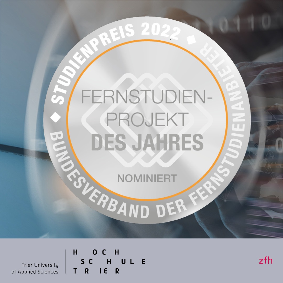im Fernstudium Informatik“ hat der Bundesverband der Fernstudienanbieter den Fernstudiengang an der Hochschule Trier für den Studienpreis in der Kategorie „Fernstudienprojekt des Jahres 2022“ nominiert. Eine Studienpreis-Jury, die im kommenden April tagt, wird die Gewinner auswählen.