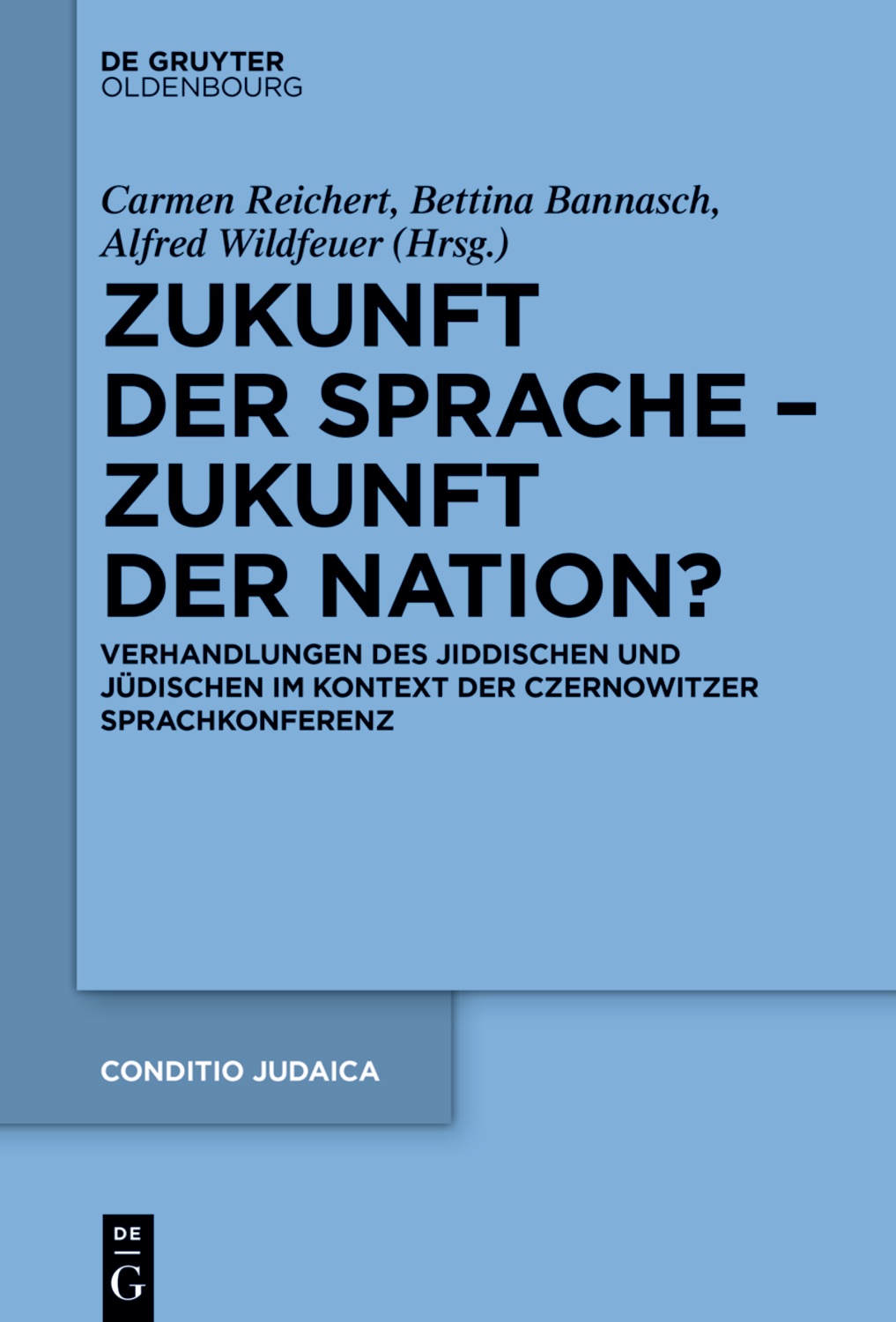 Zukunft der Sprache – Zukunft der Nation? Verhandlungen des Jiddischen und Jüdischen im Kontext der Czernowitzer Sprachkonferenz. Herausgegeben von: Carmen Reichert, Bettina Bannasch und Alfred Wildfeuer. Band 97 der Reihe Conditio Judaica. De Gruyter. März 2022.
