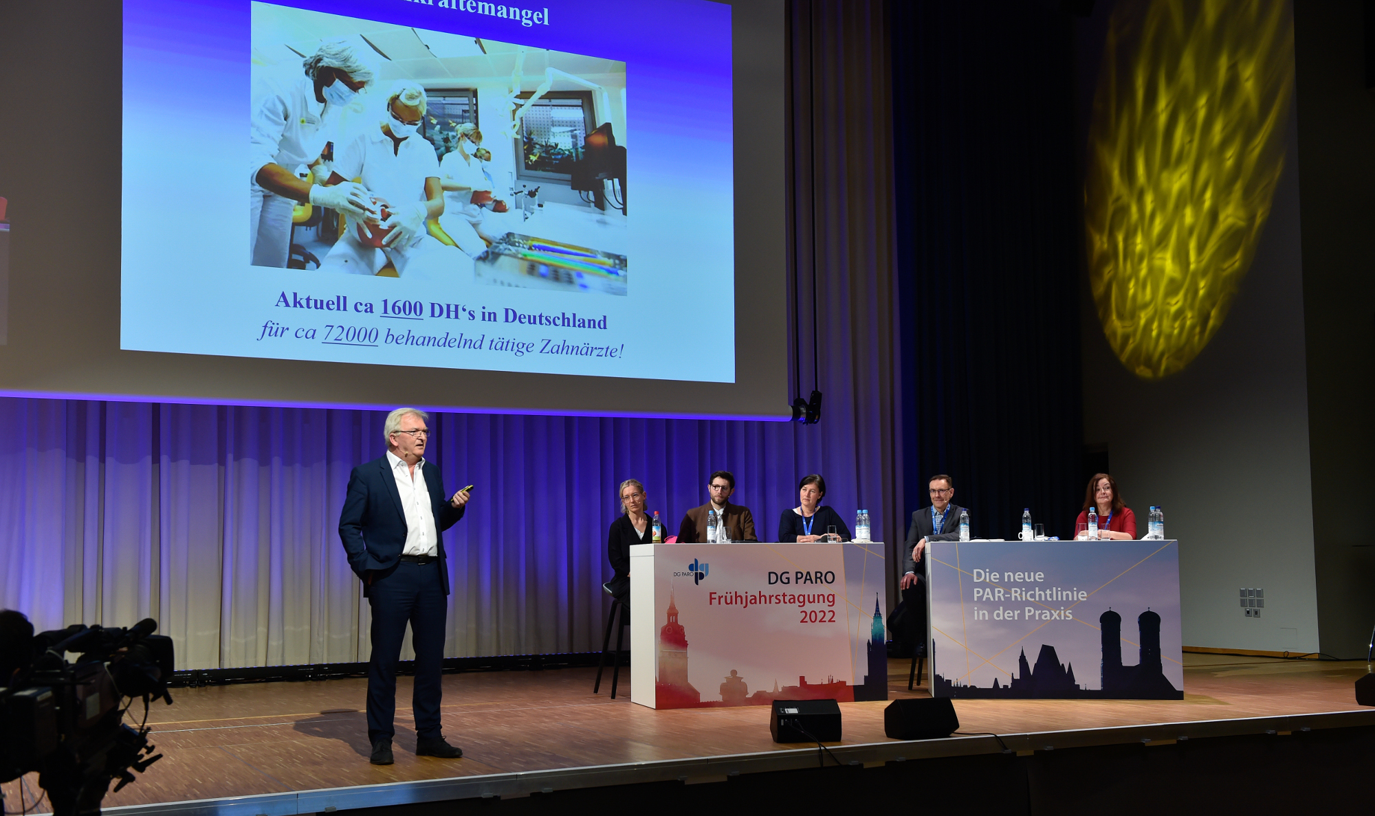 Endlich mal wieder vis-à-vis mit Kolleg:innen: Mit 220 Personen vor Ort und rund 400 live vor den Bildschirmen, ist die Deutsche Gesellschaft für Parodontologie (DG PARO) mit ihrer Frühjahrstagung erfolgreich in das Fortbildungsjahr 2022 gestartet. An zwei Tagen wurde dabei ein Thema aufgegriffen, das nach wie vor viele Fragen in der Versorgung von GKV-Patient:innen aufwirft: die Umsetzung der neuen PAR-Richtlinie in der zahnärztlichen Praxis.