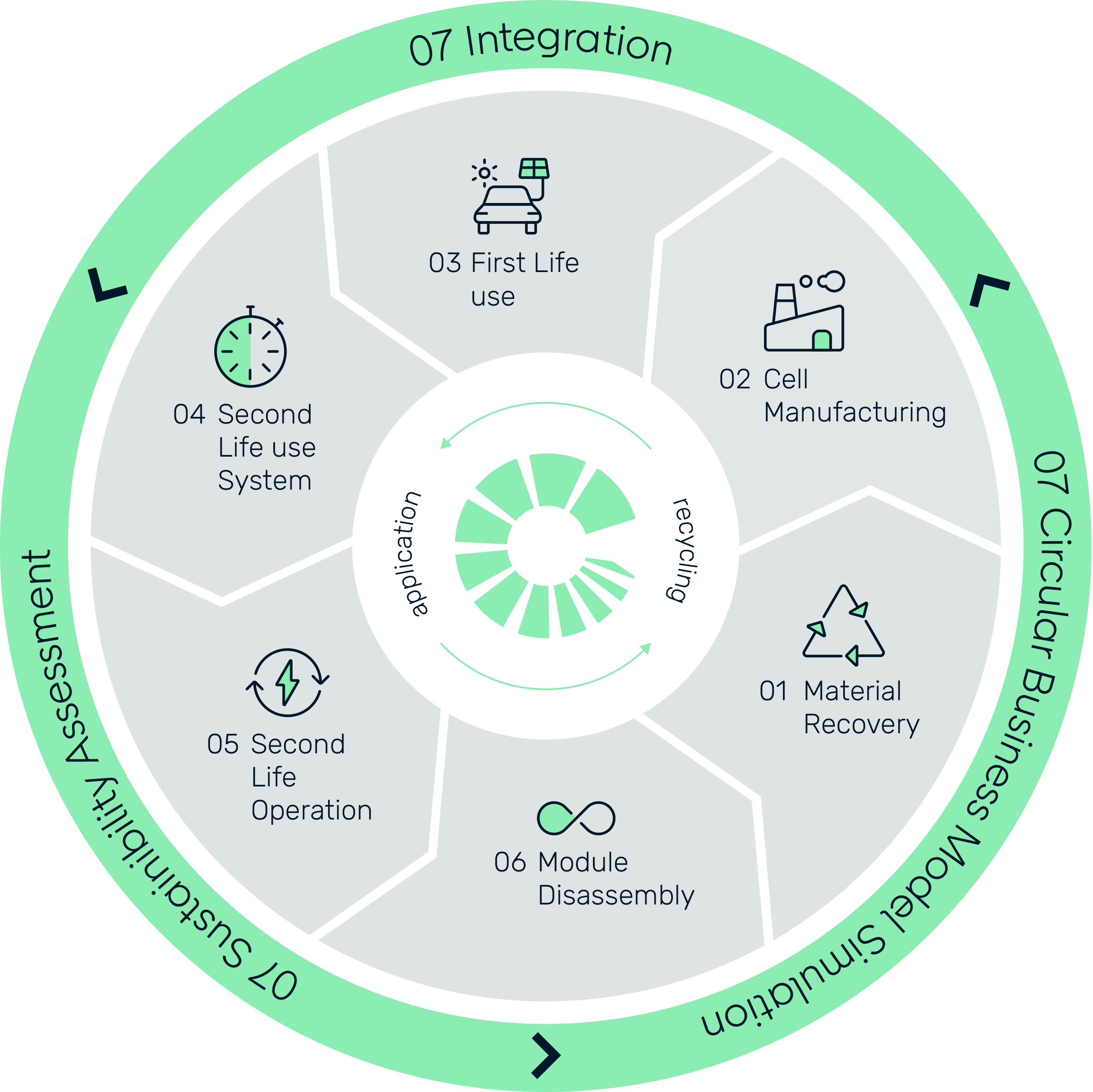 Das Projekt CircuBAT sucht in allen Lebensabschnitten von Lithium-Ionen-Batterien nach Lösungen für verbesserte Nachhaltigkeit. Dazu gehört, die Lebensdauer der Batterien in ihrer ersten Anwendung zu verlängern. Erreichen wollen die Forschenden dies durch die Entwicklung optimaler Lade- und Entladestrategien sowie durch neue Konzepte für den Bau von Batterien, welche Reparaturen einfach möglich machen. Weiter sollen Batterien nach ihrer ersten Anwendung in der Mobilität als stationäre Energiespeicher zum Einsatz kommen. Im Projekt wird deshalb erforscht, wie sich diese am besten ins Stromnetz integrieren lassen und wie ein sicherer sowie effizienter Betrieb gewährleistet werden kann. Schliesslich suchen die Forschenden nach Lösungen für die Demontage und Materialrückgewinnung, so dass die Sekundärrohstoffe in grossen Mengen und guter Qualität der Produktion von neuen Batterien zugefügt werden können. Neben diesen technischen Fragen untersucht das Projekt auch sozioökonomische Aspekte und prüft ganzheitliche Geschäftsmodelle. CircuBAT wird damit einen wichtigen Beitrag zur Dekarbonisierung der Mobilität in der Schweiz und zur Nutzung von erneuerbaren Energien leisten.