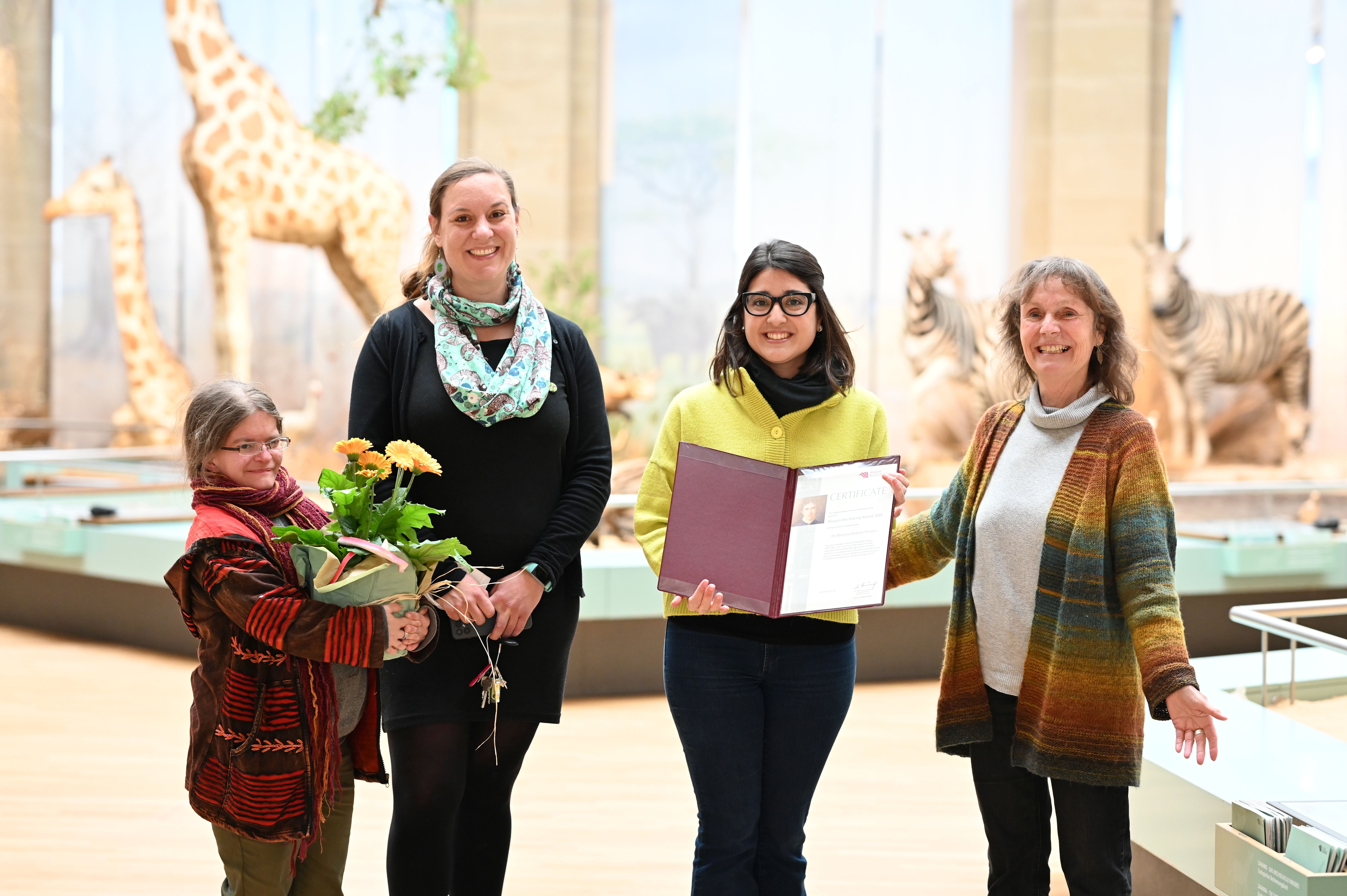 „Die Verleihung des Preises erkennt die bisherige, großartige Leistung Chuliver Pereyras als Wissenschaftlerin an. Die Finanzierung ermöglicht es ihr, weitere Erfolge zu erzielen“, erläutert Prof. Dr. Bernhard Misof, Direktor des LIB. Heike Wägele, Koordinatorin des Margarethe-Koenig Preises, ergänzt: „Mit diesem Preis können wir für ein ganzes Jahr junge Wissenschaftlerinnen aus dem In- oder Ausland fördern, um sich der Biodiversitäts- und Evolutionsforschung weiterhin zu widmen. Die Preisträgerinnen sollen das Jahr nutzen, um Ergebnisse zu publizieren, an Fortbildungen und Kongressen teilzunehmen, sowie Anträge und Bewerbungen zu schreiben.”