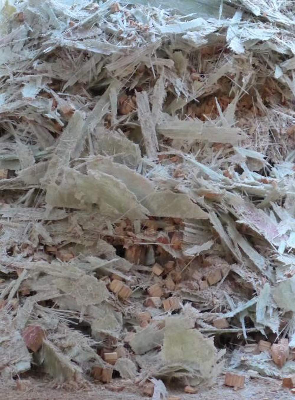 Die beim Rückbau demontierten Rotorblätter und Verkleidungen werden direkt am Standort der WEA in kleinere Teile zersägt und abtransportiert. Die carbonhaltigen Materialien werden hierbei bereits sauber von den anderen Stoffströmen getrennt, um deren Recyclingwege nicht zu beeinträchtigen. Auch die dickwandigen Flanschbereiche mit den Metallbolzen bzw. Metallhülsen bedürfen einer separaten Aufbereitung zur Metallabscheidung. Übrig bleibt der Hauptteil der Rotorblätter mit seiner Matrix aus glasfaserverstärkten Kunststoffharzen (GFK), inklusive den darin verbauten sogenannten Sandwichmaterialien wie Balsaholz und/ oder Kunststoffschäume aus PVC oder PET.