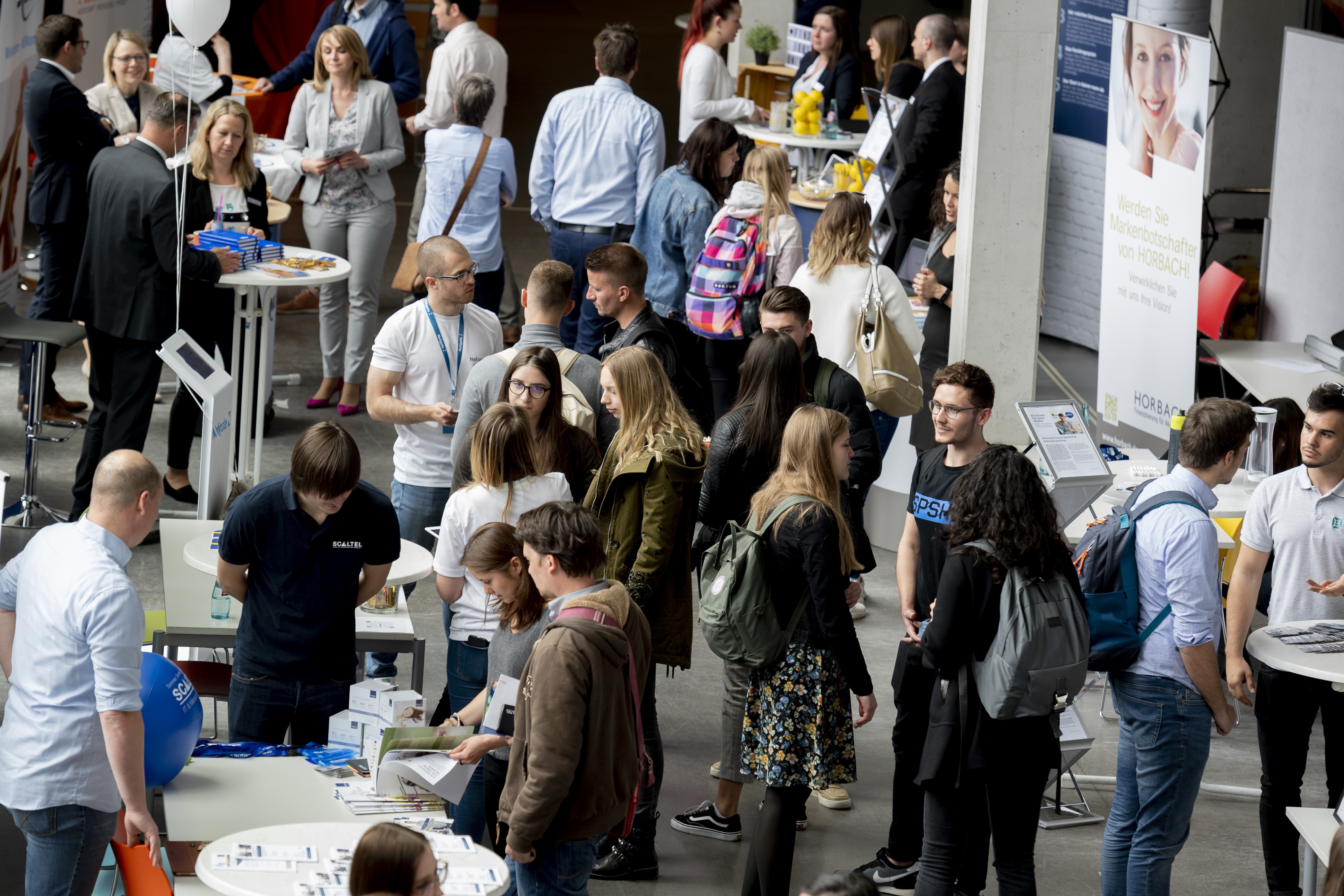 Die Wirtschaft ist zu Gast am Campus der Hochschule Mainz. Am Donnerstag, 5. Mai 2022 präsentieren sich über 40 Unternehmen den Arbeitskräften von morgen. Die Studierenden haben die Möglichkeit, sich mit Vertreterinnen und Vertretern der Unternehmen auszutauschen und auf die Suche nach Jobs, Werkstudententätigkeiten, Praktika und Abschlussarbeiten zu gehen.