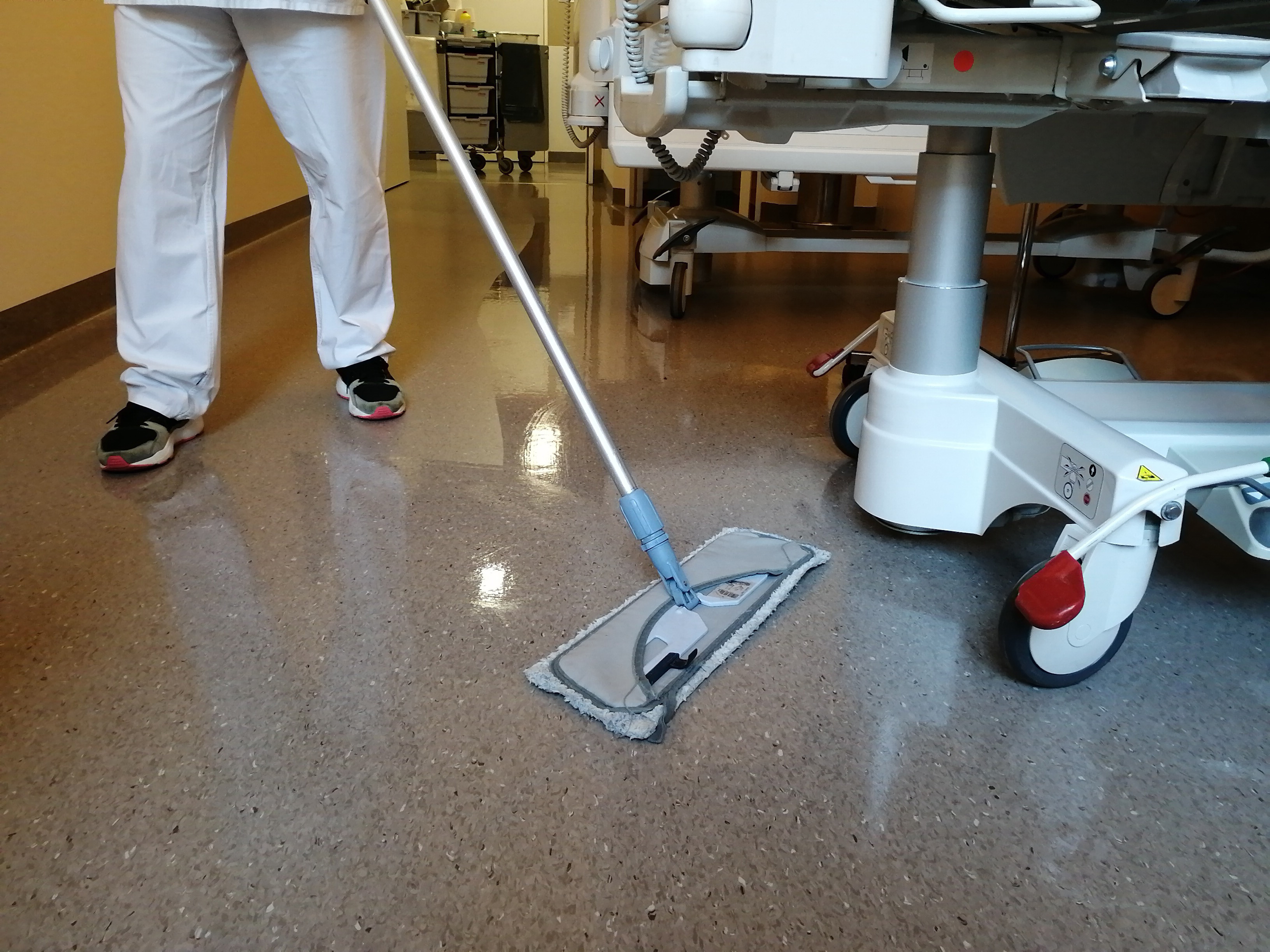 Im vergangenen Jahr beschrieb ein Forschungsteam aus Jena und Berlin, wie in den Stationszimmern eines Klinikneubaus die von den Patienten mitgebrachten Bakterien die Umweltkeime nach und nach verdrängen und sich auf Türklinken, im Waschbecken und auf dem Fußboden ein jeweils typisches Keimspektrum ausbildete. Dabei untersuchte das Team auch das Auftreten von jenen Gensequenzen, die Antibiotikaresistenzen vermitteln. Besonders auf dem Fußboden sammelten sich diese in potenziell resistenten Stämmen an. Mit seiner jetzt in der Fachzeitschrift Clinical Microbiology and Infection erschienenen Folgearbeit analysierte das Team den Einfluss verschiedener Reinigungs- bzw. Desinfektionsmethoden auf die Bakterienflora in Klinikzimmern. Die Studie wurde im Rahmen des InfectControl2020 Verbundes vom Bundesministerium für Bildung und Forschung gefördert.