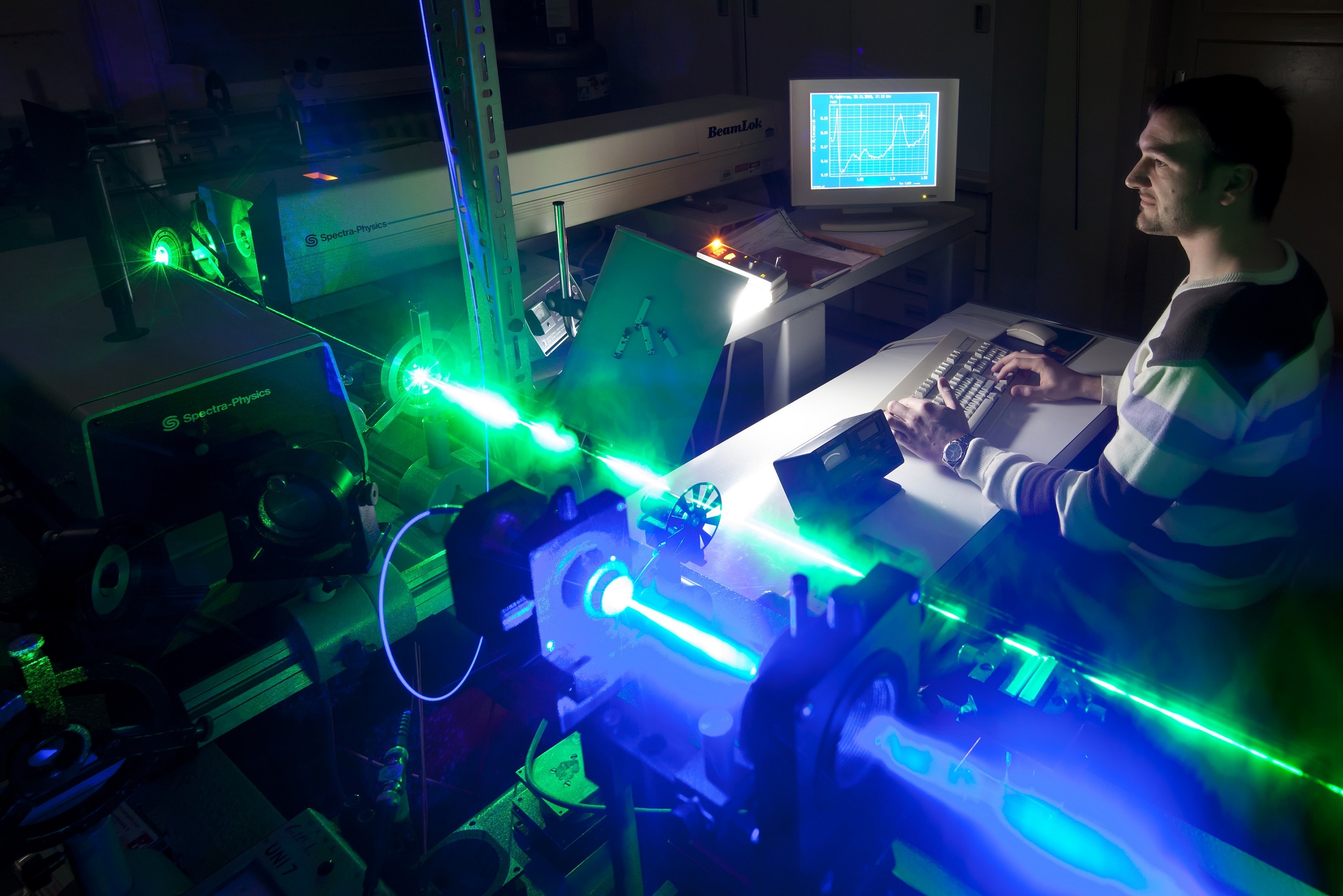 In der Fakultät für Maschinenbau haben die Freiwilligen die Möglichkeit, dem Leiter des Fachgebiets Qualitätssicherung und Industrielle Bildverarbeitung, Prof. Gunther Notni, über die Schulter zu schauen, wenn er Einsatzmöglichkeiten multispektraler Kamerasysteme zur Umweltüberwachung erforscht und damit die Möglichkeit schafft, Waldzustandsanalysen vorzunehmen.