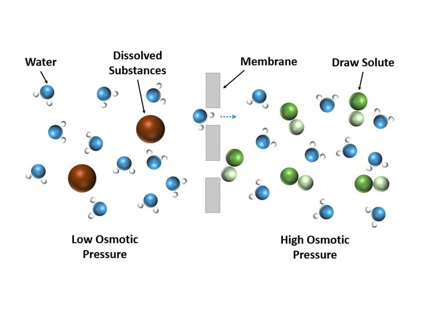 Zu den Technologien für die Behandlung und Aufbereitung zählen die Vorwärtsosmose, die Hochdruck-Nanofiltration, die Umkehrosmose und Adsorbertechniken. Forschende des Fraunhofer UMSICHT entwickeln hierfür neue Komponenten, Verfahren und Betriebsführungsstrategien mit dem Ziel, die selektive Stofftrennung zu optimieren und gleichzeitig den Energiebedarf gering zu halten. Durch membranbasierte Konzentrationsvorgänge ist es z. B. gelungen, industrielle Abwasserströme auf bis zu 60 Prozent Trockensubstanz an der Grenze ihrer Pumpfähigkeit zu konzentrieren (Vorwärtsosmose).