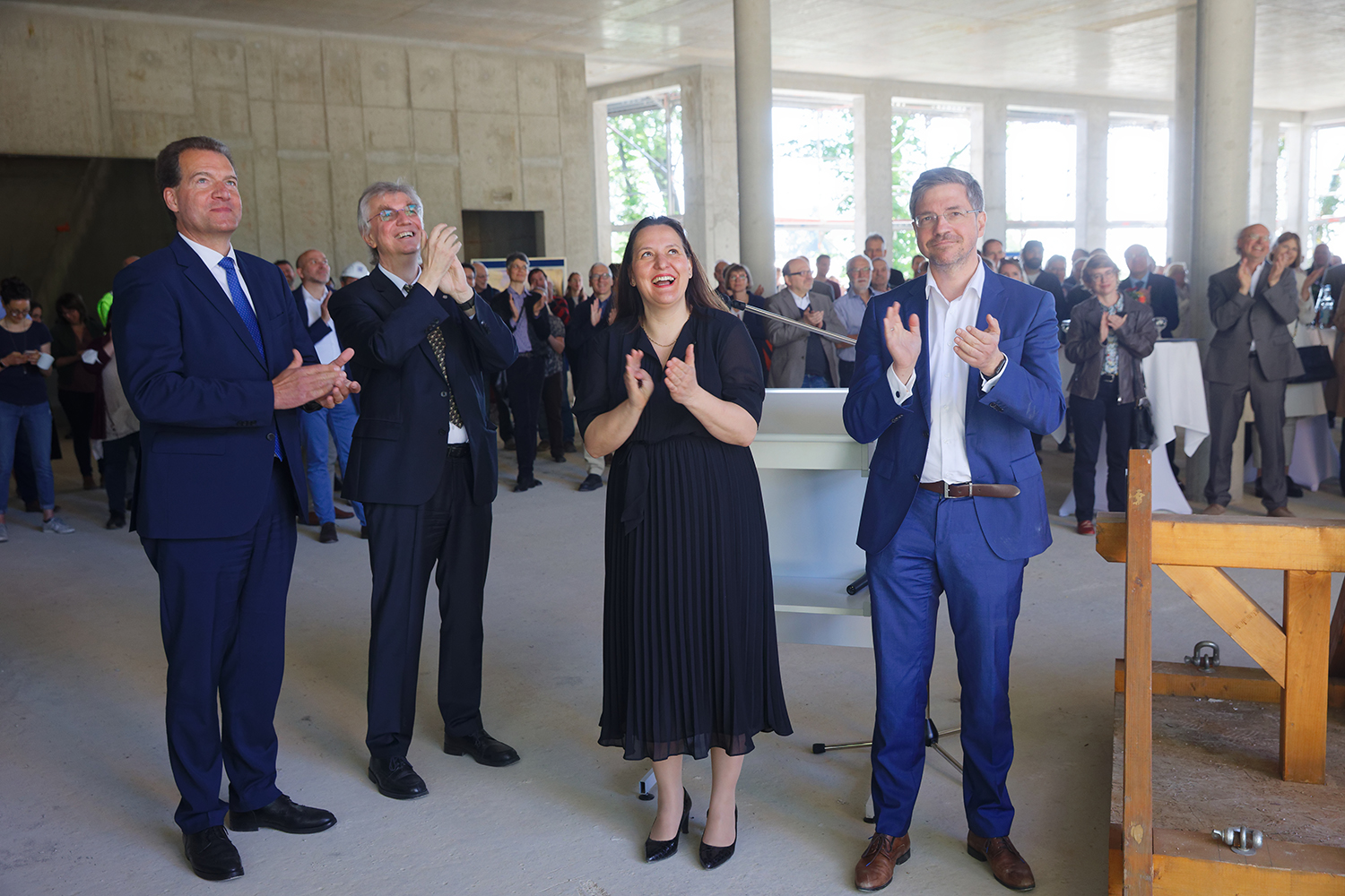 Nach einer Begrüßung durch den Sprecher des Vorstands und wissenschaftlichen Vorstand Prof. Dr. Matthias Steinmetz und den Grußworten der Ehrengäste hob der Polier der beteiligten Baufirma am Ort des zukünftigen Haupteingangs den Richtkranz und widmete dem entstehenden Gebäude einen feierlichen Richtspruch.
