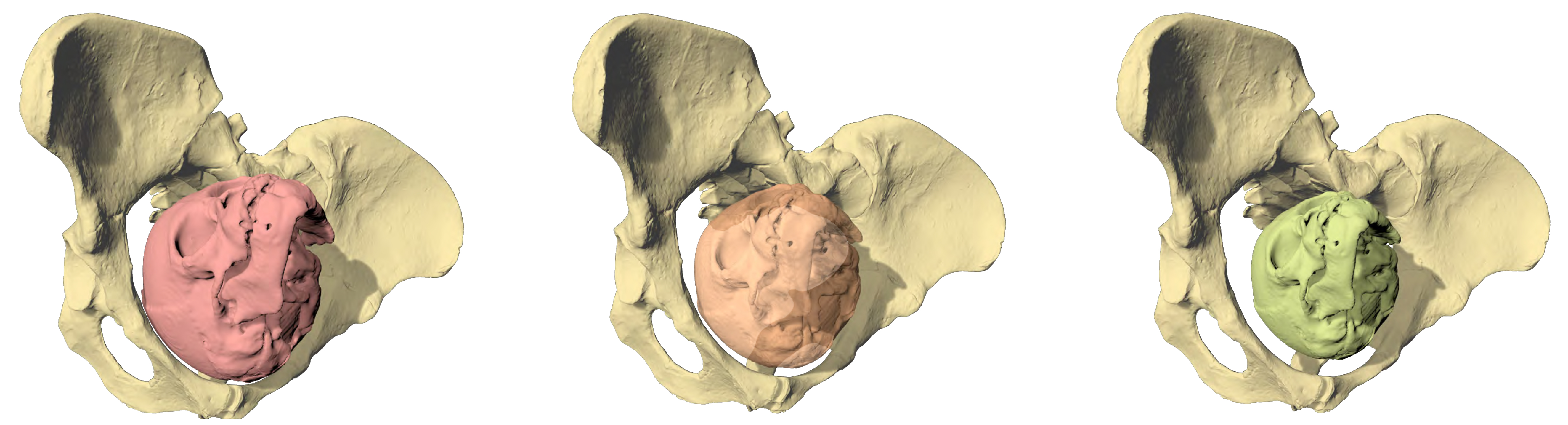 For their 3D simulations, the researchers also took into account the increased pelvic joint mobility during pregnancy and determined a realistic soft tissue thickness. They found that only the 110 g fetal head sizes passed through the pelvic inlet and midplane without difficulty, unlike the 180 g and 145 g sizes. “This means that Australopithecus newborns were neurologically immature and dependent on help, similar to human babies today,” Häusler explains.